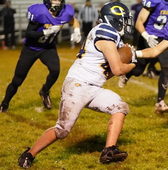 Crookston received the opening kickoff and went three and out. On the ensuing punt, Barnesville’s Asher O’Brien returned it for a 77-yard touchdown. The two-point conversion was good, and Barnesville took an 8-0 lead. Crookston got the ball back and three plays into the drive, Barnesville’s Nathaniel Huesman intercepted a pass from Lionel Luna, and one play later, Gannon Bolgrean ran it in for a 15-yard touchdown. The two-point conversion was good, and the Trojans took a 16-0 lead.