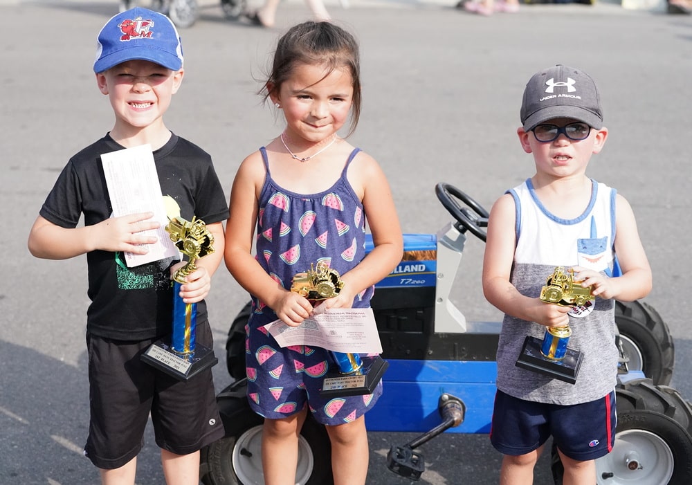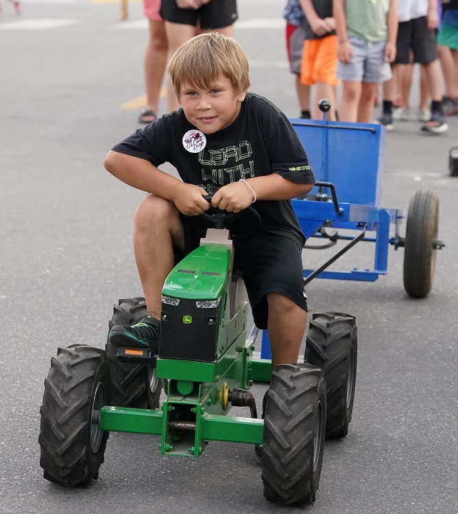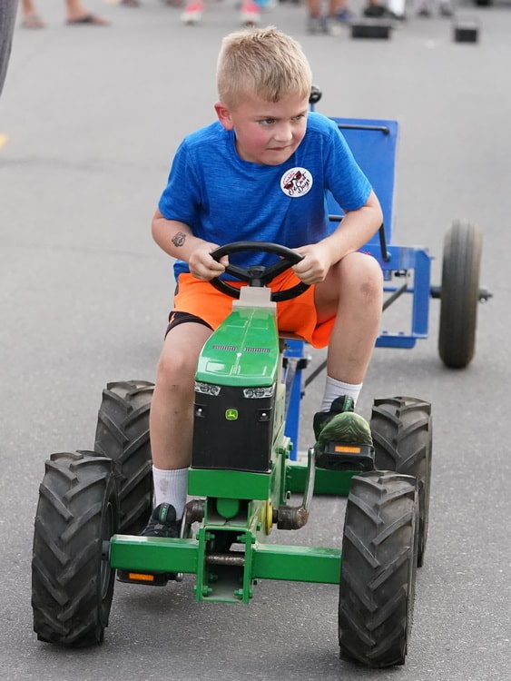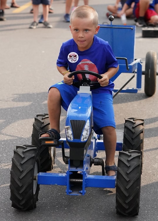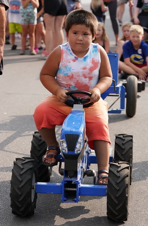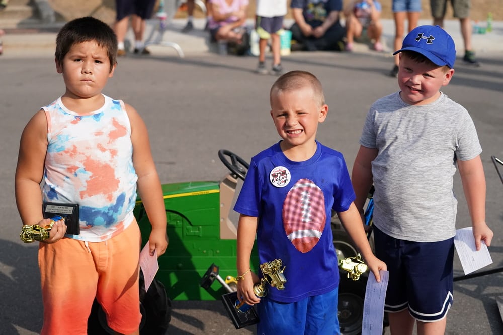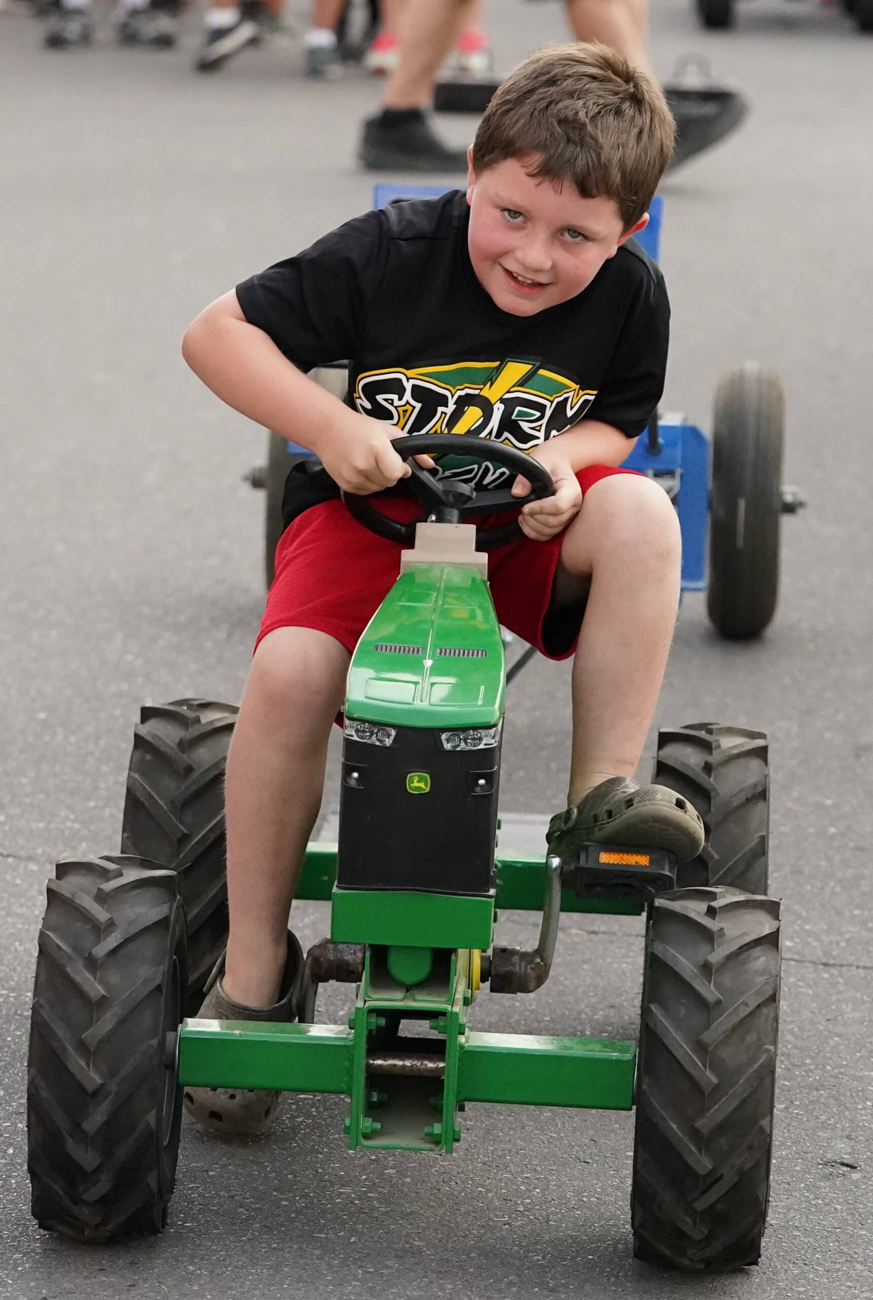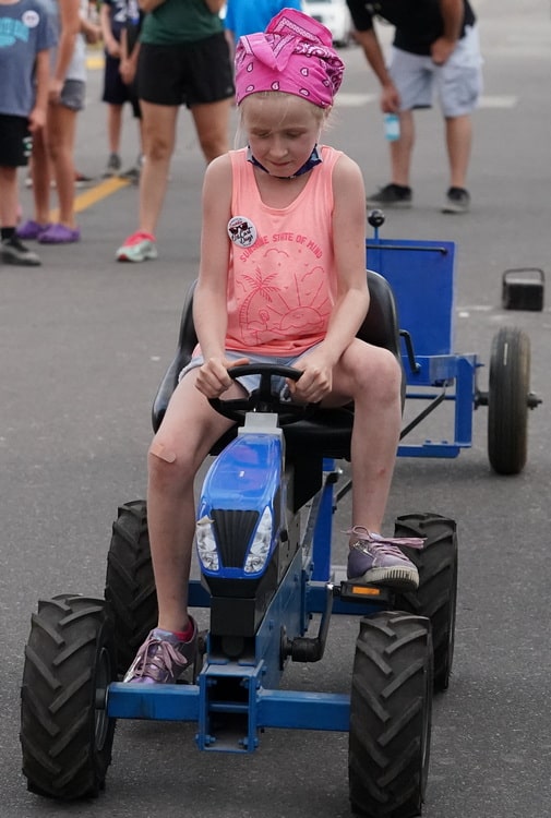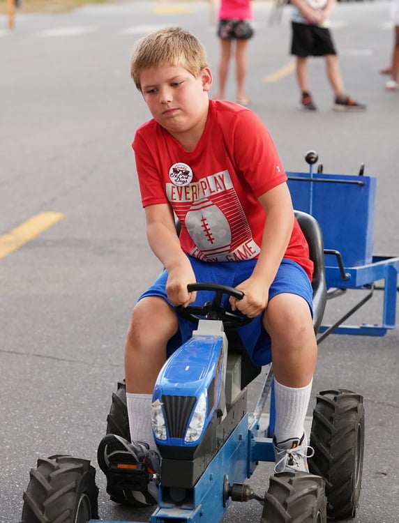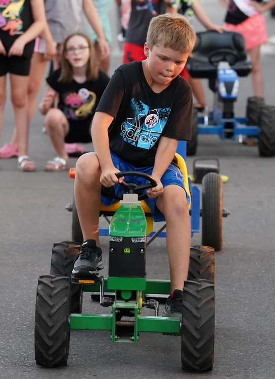 124 kids ages 4 to 12 competed in the Ag Country Tractor Pedal Pull on Ash Street on Thursday as part of the Ox Cart Days festival. The top three from each age group is listed below and ALL 124 kids are pictured below-