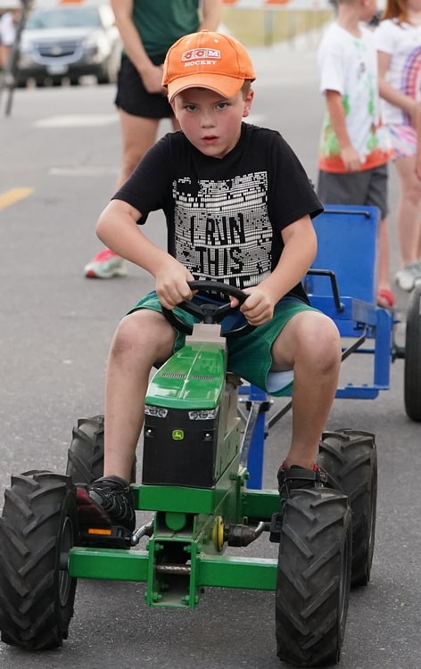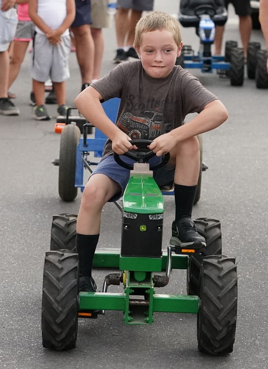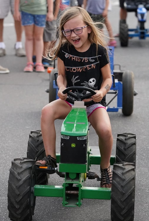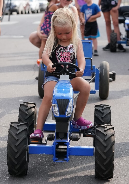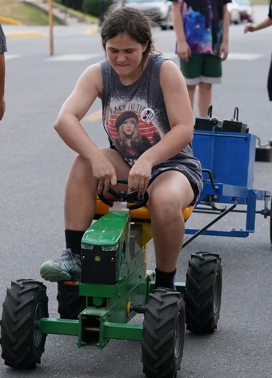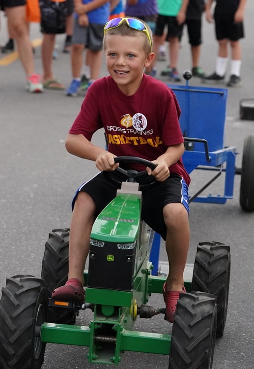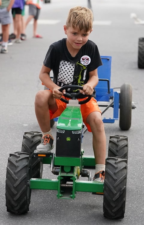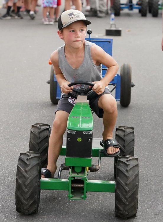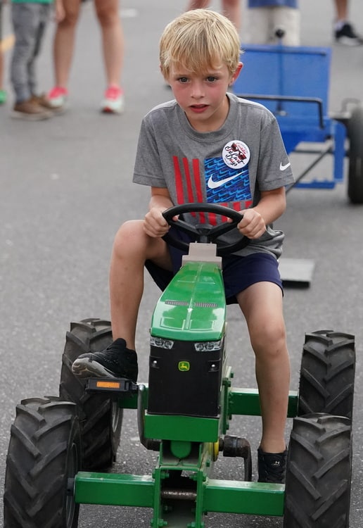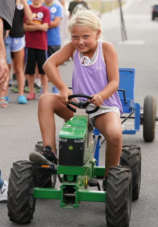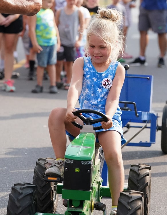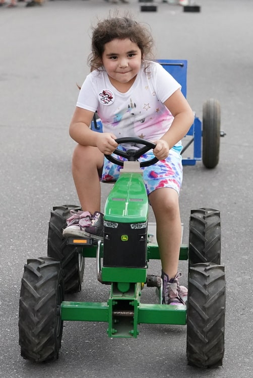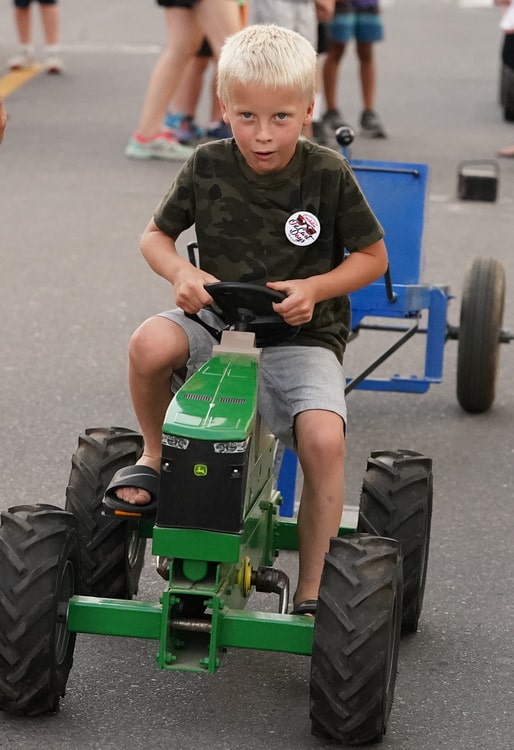124 kids ages 4 to 12 competed in the Ag Country Tractor Pedal Pull on Ash Street on Thursday as part of the Ox Cart Days festival. The top three from each age group is listed below and ALL 124 kids are pictured below-