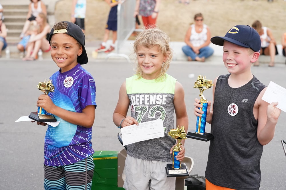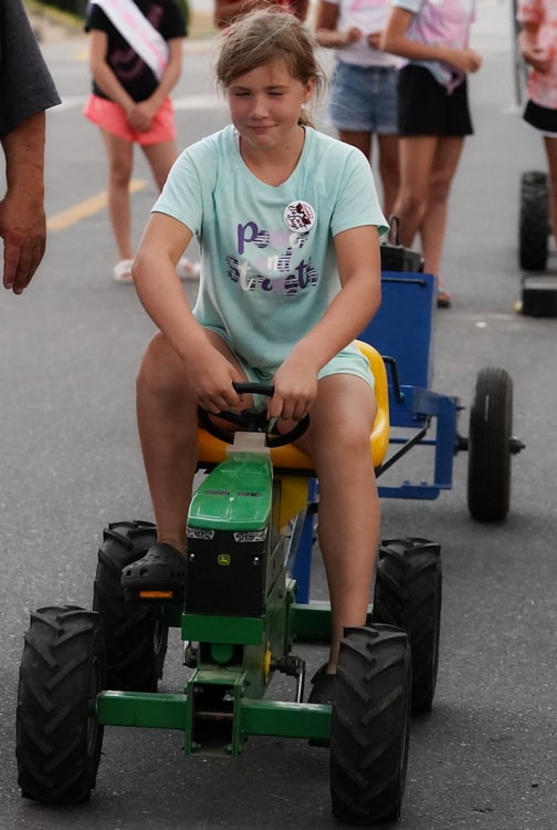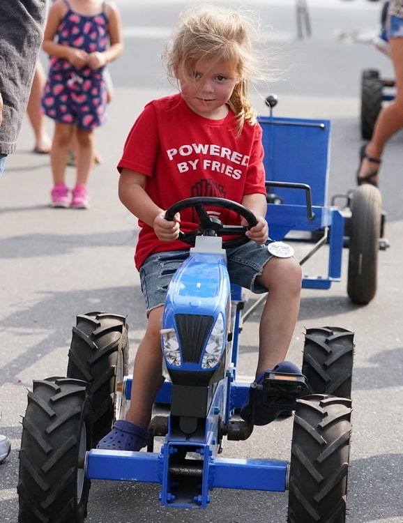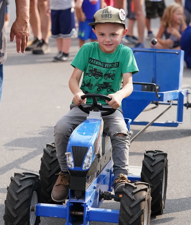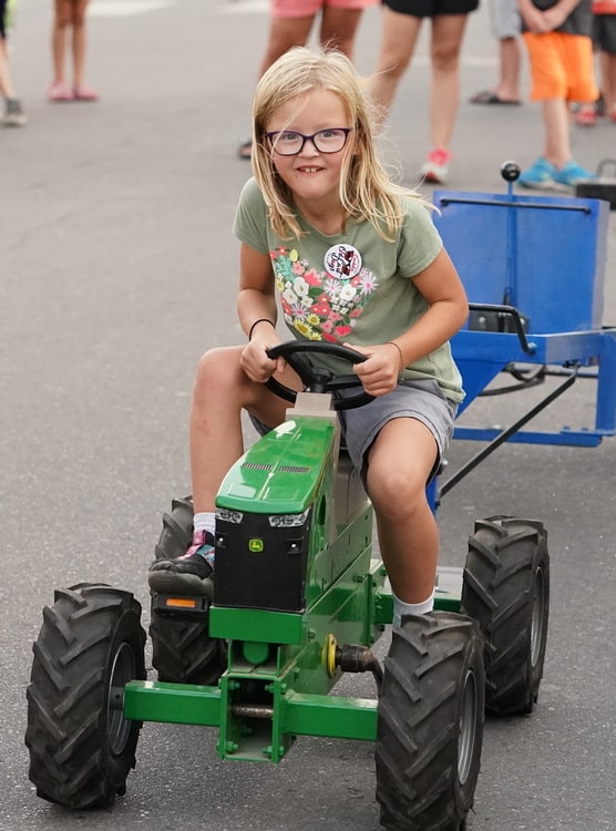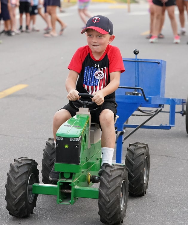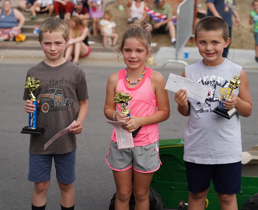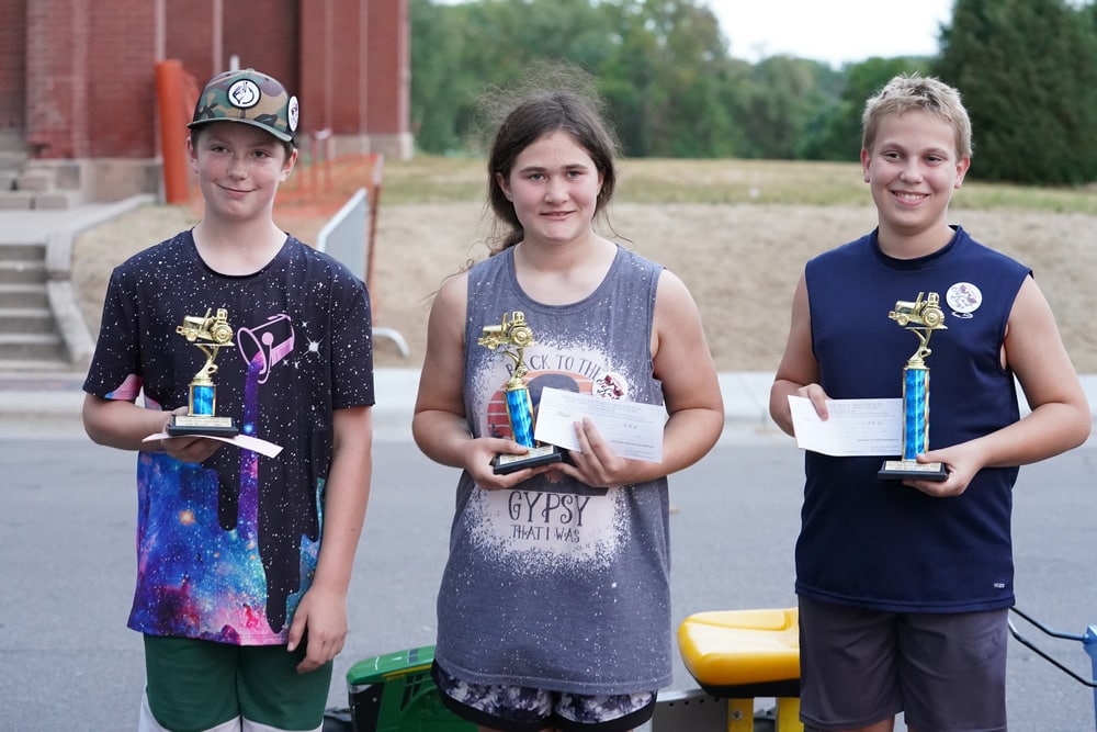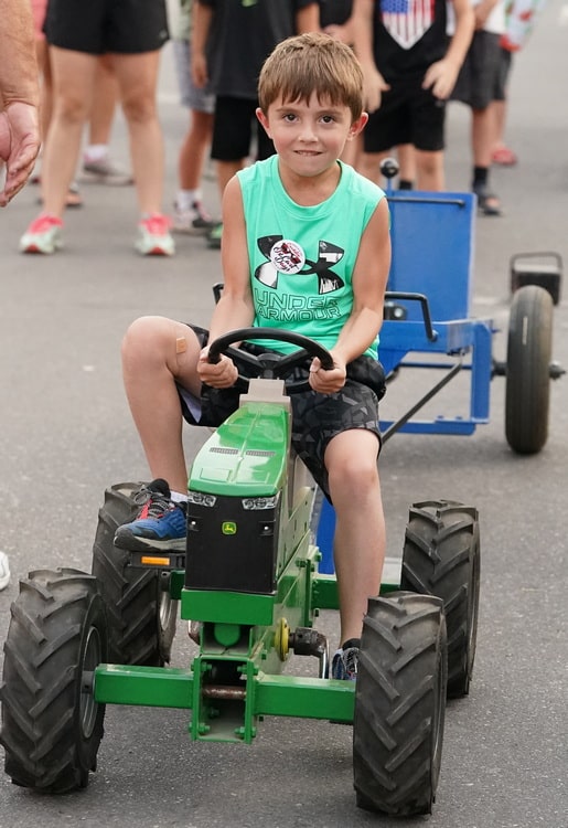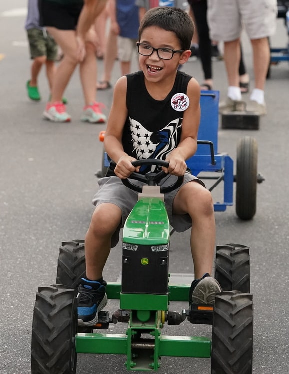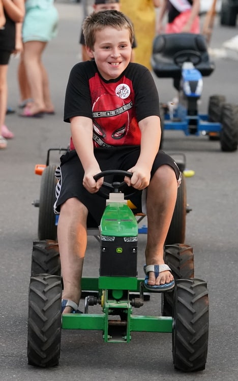 124 kids ages 4 to 12 competed in the Ag Country Tractor Pedal Pull on Ash Street on Thursday as part of the Ox Cart Days festival. The top three from each age group is listed below and ALL 124 kids are pictured below-