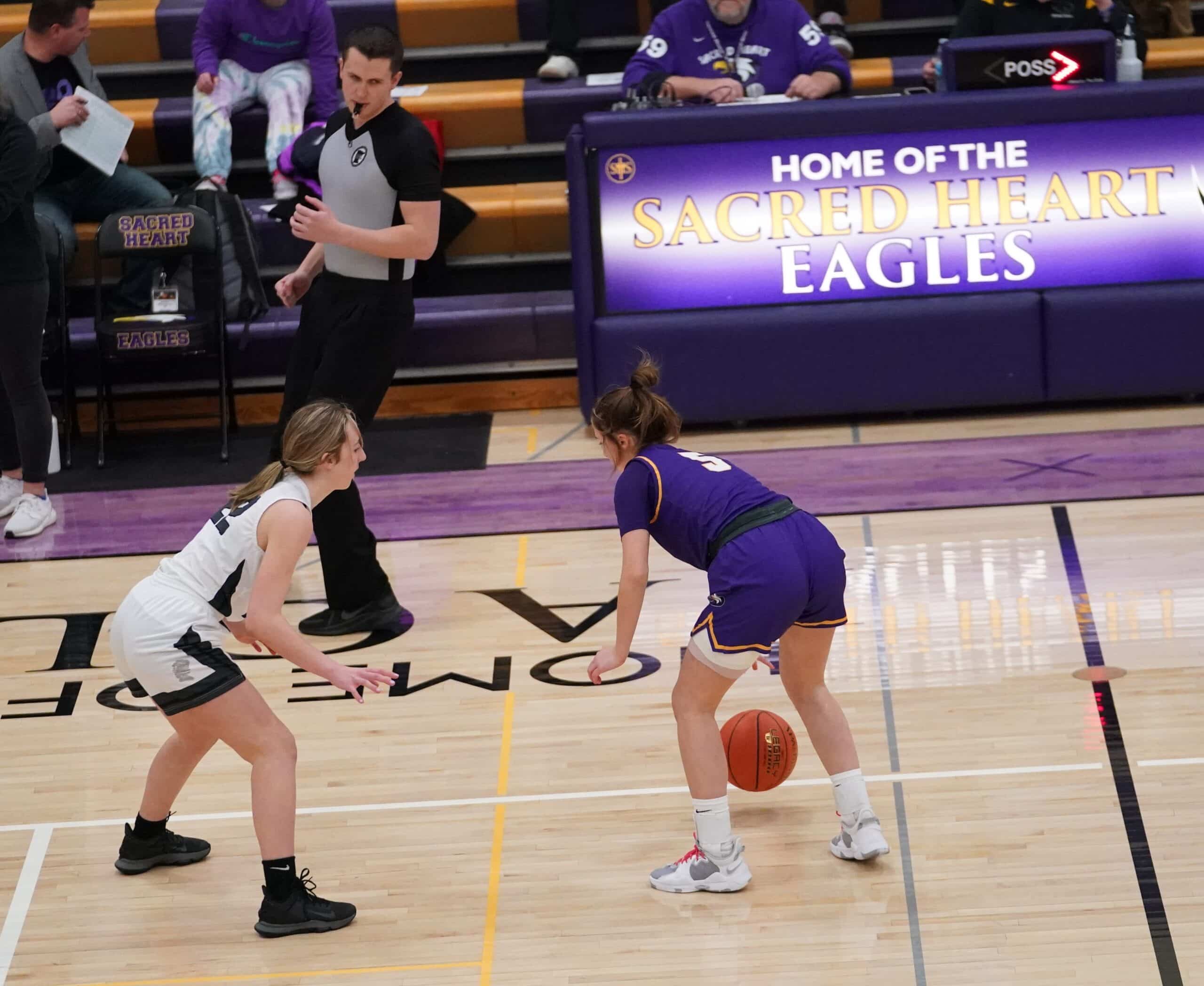 The Climax-Fisher Knights and Sacred Heart Eagles Girls’ Basketball teams squared off for 3rd place at the Sacred Heart Christmas Tournament on Wednesday. Both teams were coming off a loss from the day before and looking for their second win of the season. Climax-Fisher used a 9-0 run to end the first half and scored 21 of the game’s final 22 points to push their way to a 40-16 win. “Our defense was much better today,” said Knights Coach Adrianna Rooney. “I think the girls saw when they play together and communicate, we can accomplish a lot.”