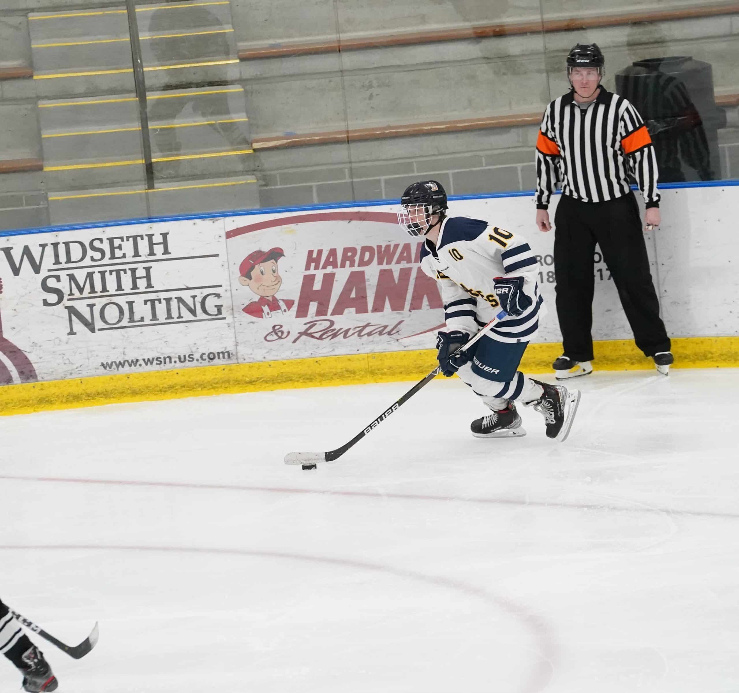 Jaren Bailey got the start for Crookston in goal and made 7 saves while earning his fourth win of the season and his first shutout. Andrew Withuski got the start for Wahpeton-Breckenridge and was able to stop the puck 40 times while allowing 10 goals and suffering the loss. David Beam also played in the third period for the Blades and made 7 saves while allowing 4 goals.