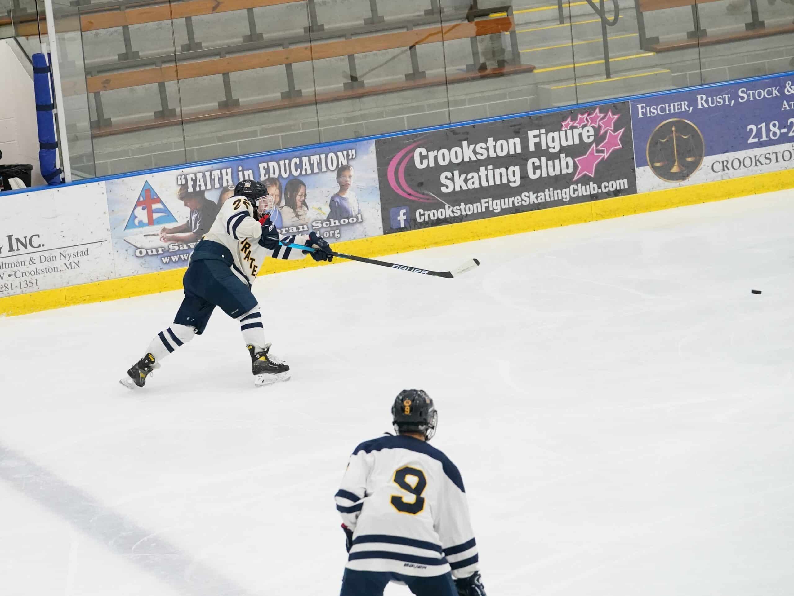 The Crookston Pirates Boy’s Hockey team was looking for a bounce-back win after a 4-2 loss to Mayville-Portland on Monday night. They would get that opportunity on Tuesday when they hosted the Wahpeton-Breckenridge Blades. The Pirates exploded offensively for a 14-0 victory that saw Jack Doda and Nathan Kelly both earn hat tricks, and four other Pirates get their first career varsity goals. Crookston also had 17 skaters earn at least 1 point in the victory. “It’s a great team win after a disappointing loss,” said Pirates Head Coach Josh Hardy. “Nice to get so many different guys involved and everyone is feeling good now before heading into a big section game on Friday with Lake of the Woods.”