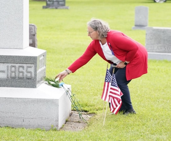 The final recognition was the late Kim Samuelson. Kim was the owner of RBJ’s Restaurant and was a big supporter of the Memorial Day Services and her family donated money to keep the services going.Â