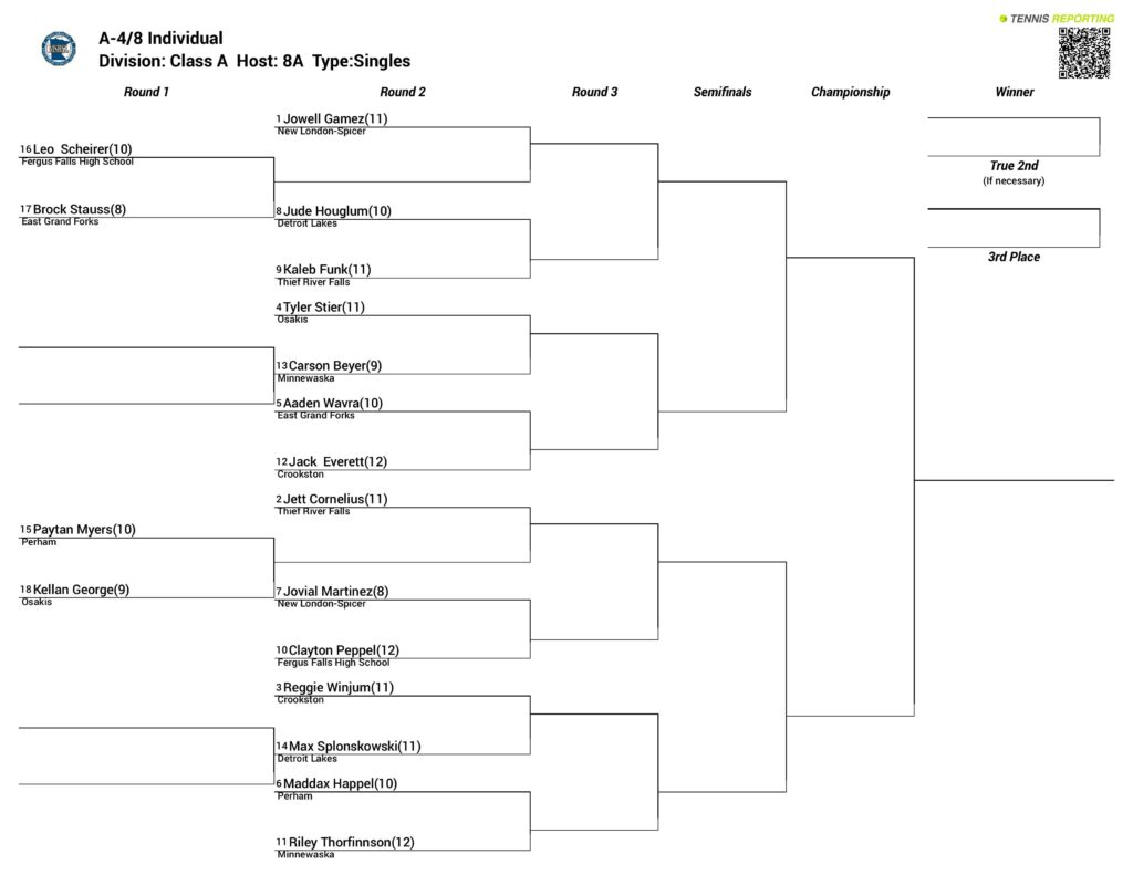 Monday, May 19 – Quarterfinals at Moorhead and Fargo Courts Plus (10:00 AM)