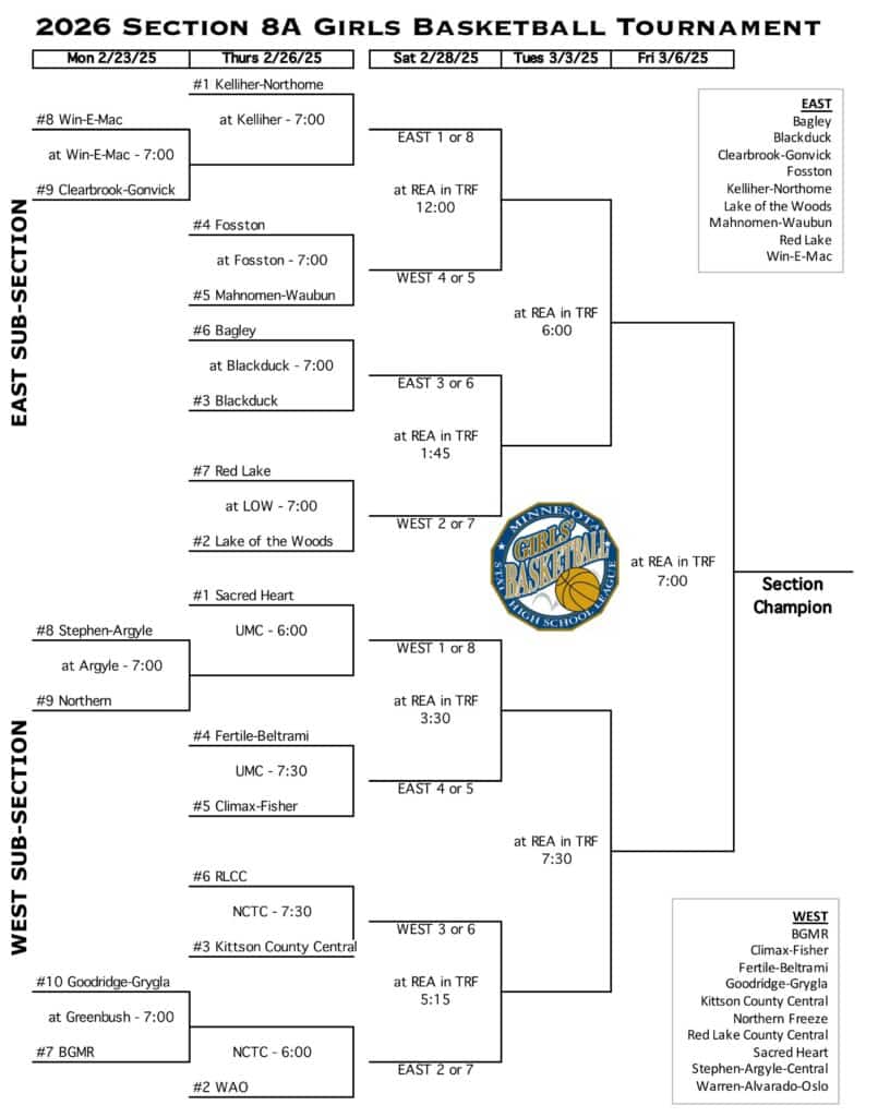 The Section 8A Girls Basketball Tournament seeds and schedule has been released. The information is below –