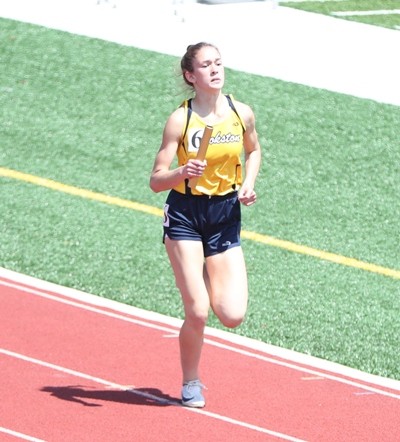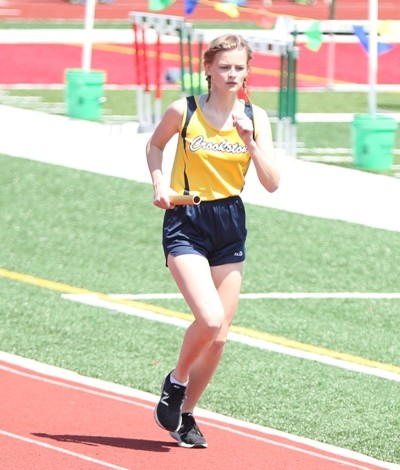 “Emma had a big job to do today,” noted Crookston head coach Amy Boll. “She had four events to do, and she came out really strong. Both headstrong and physically strong. Her performance was really amazing. In the hurdles, she really just started training this year. It really shows how coachable she is and how athletically gifted she is, and mentally strong that she is. That is a hard race to run, and you have to be very physically strong, and she is a multiple sport athlete. She had a good race. She had little hiccups. They have work to do. Knowing Emma and how hard she works, I really think she’s going to obtain that goal (of an improved finish time in the state meet). We’ll see what she does. She’s got a week more of practice.”