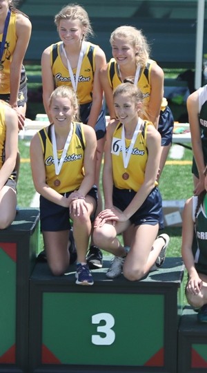 In the 4×800 relay Thea Oman, Anke Wiersma, Hailey Spivey, and Hayden Winjum finished in 10:05.26 finishing in third place for Crookston.