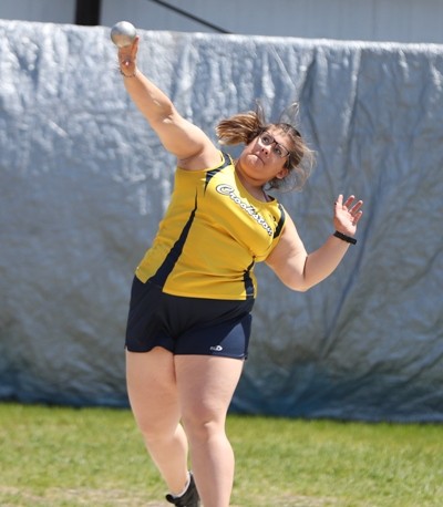 In the 100-meter hurdles, Breanna Kressin finished in 16.33 seconds to take fourth place. In the 300-meter hurdles, Kressin claimed fifth place with a time of 49.76 seconds. “She was a little disappointed in her run today,” said Coach Boll. “But where she came from after getting injured at the Bemidji State meet, she came a long way and I am proud of her.”