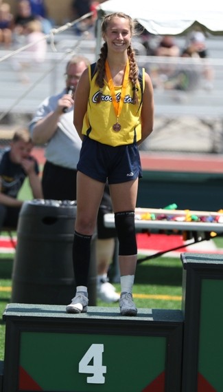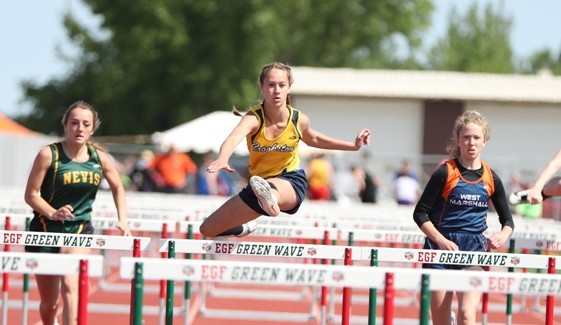 Emma Borowicz won the 300-meter hurdles with a time of 47.26 seconds to advance to the state track meet next weekend at Hamline University. “I don’t think its hit me yet, I’m so tired, but yeah, it feels great,” said Borowicz. “My first 200 (meters), that was good, that was how I wanted it to be, and then after that, I was just grinding it out because I was tired. It felt exhausting, but it felt good to have the stands there (for the final 100 meters) with my parents and everybody from Crookston helping cheer.”