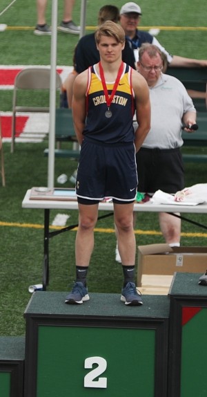 Karsten Isaacson cleared 5-09 feet in the high jump for a sixth-place finish. “If you can (achieve your personal record) at the section meet, that’s all you can ask for,” noted Folkers of Isaacson’s career-best jump. “He’s excited about high-jumping so we’ll work him a little more next year.”