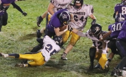 The Crookston Pirate Football team turned the ball over seven times in the game and the #3 ranked Barnesville Trojans cruised to a 28-0 victory in a Section 8AA game played in Barnesville on a cold, rainy night.