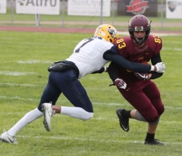 Augustana was forced to punt for the first time in the game on their next drive before UMC punted away their next possession out at the Augustana 18-yard line. On second down, Logan Huso (Jr., Eagan) forced a fumble for the Minnesota Crookston defense which Javon Chappell (Jr., Ocala) recovered at the Augustana 30-yard line. Minnesota Crookston was unable to advance the ball beyond the spot of the fumble recovery, before settling for a 47-yard field goal try. Jared McLemore (Fr., Lucas, TX) attempted the kick and sent it low over the line with enough distance to split the uprights and clear the crossbar for the Golden Eagles only points of the game cutting the deficit to 45-3. “You’re just trying to watch the officials to see whether it’s good or not,” said UMC head coach Mark Dufner. (McLemore) did a nice job with that.” Minnesota Crookston did finish with a 2-0 advantage in the turnover battle in the game after the fumble recovery. “One of the things we emphasized is takeaways,” Dufner added. “Trying to win the turnover, the few times they had the ball on the ground we were able to recover. Those are things we talk about and work on every day. Special teams did some good things, guys played hard in the second half. They played hard.”