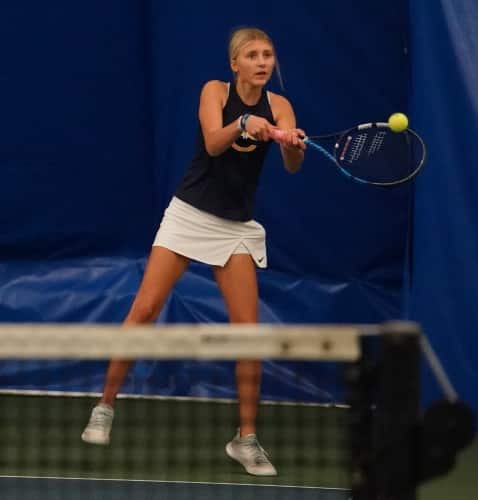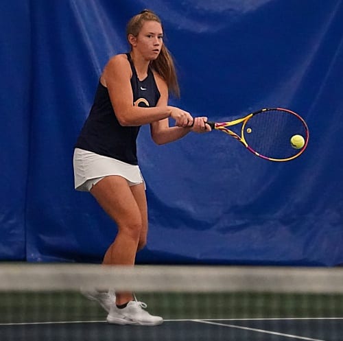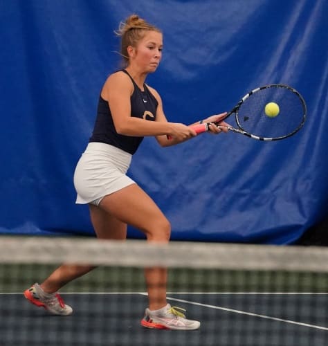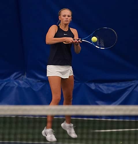 The second match completed was the first singles match where Providence Academy’s Annika Harberts Ott beat Hayden Winjum 6-2, 6-1 to take a 2-0 lead.