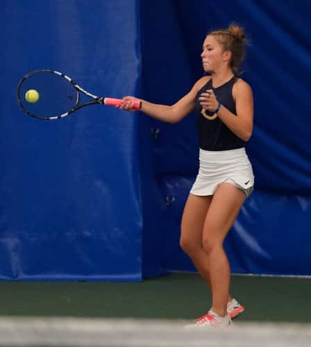 Halle Winjum was the second Pirate to earn a victory as she cruised to a 6-1 first set victory and won a hard-fought second set 7-5 to tie the match 2-2.