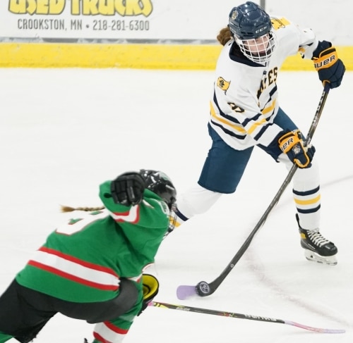 The Crookston Pirate Girl’s Hockey teams scored three times in the first period and ended up with four different players scoring to lead the #9 ranked Pirates to a 4-1 win over the visiting East Grand Forks Green Wave at the Crookston Sports Center.