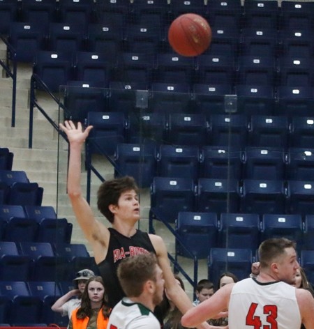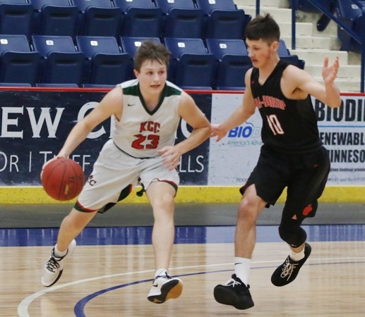 KCC’s Kujava scored the first points of the second half, but Ada-Borup/West’s Gwin answered with back-to-back three-pointers for a 30-17 lead over two minutes into the half.  Ada-Borup/West led 30-19 when KCC’s Kujava made another three-pointer three minutes into the half to bring his team within a 30-22 deficit.  Ada-Borup/West dominated the defensive end of the floor and only allowed 13 points in the final 15 minutes of the game and coasted to a 46-35 victory.  The Cougars ended the game with an exclamation point with an alley-oop dunk from Mason Miller (see picture below in the gallery).