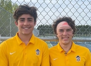 Jack Garmen and Reggie Winjum received the fifth seed and played the #12 seed Ethan Leopold and Reno Schierer of Fergus Falls. The Fergus Falls duo won the first set 6-2, but Jack and Reggie bounced back to win a marathon second set 7-5 before winning the third set 6-3 to win the match.
