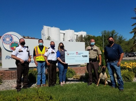 American Crystal Sugar is proud to award the Polk County Sheriff’s Office K9 Program a check for $5,000 to help with the training and equipment for this program. It has been 9 years since the Sheriff’s Office has had a K9 program. A canine’s nose is 50 times more sensitive than a human’s nose and can analyze 40 times faster. This enables a K9 to be able to locate and find hidden/dangerous suspects in situations and in areas where officers entering would place their lives in danger.