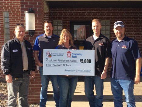 American Crystal Sugar Company awarded $5,000 to the Crookston Firefighters Association. American Crystal’s Tammy Moe and Ryan Wall presented the check to firefighters Mike Swenson, Derek Brekken and Cole Ricard.