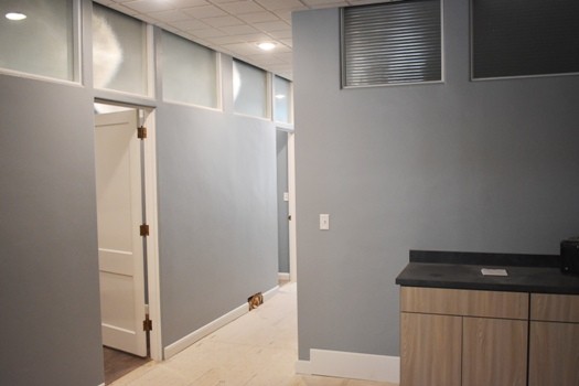 The remodel took out six unused changing rooms and modernized the other facilities within the building. “There was an old x-ray room with a lead wall, photograph washing stations, and old equipment,” said Theede. “We decided to remove that because I don’t use that personally. I refer those to the experts. We rehabbed to treatment rooms, a massage therapy room, and added a rehab bay. We updated our bathroom to be disability compliant and opened up our front office to make it more welcoming and accommodating to our clients.”
