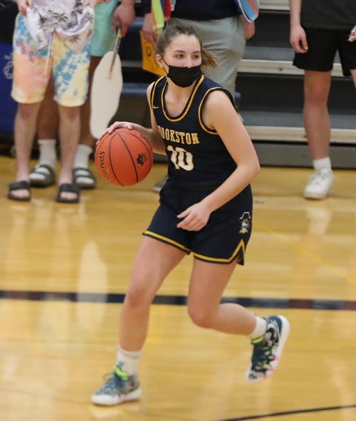 The teams were a little tentative to start the game, and Barnesville’s Kim Maesse scored the first points with a three-pointer 1:43 into the game. “There might have been some nervous energy early,” said Pirate Coach Zimmerman. “Both teams struggled a bit early on.” Crookston responded with two Halle Winjum free throws and an offensive rebound and putback by Emma Boll for a 4-3 lead. The teams were tied at 9 and 14 before Barnesville took a 20-15 lead after back-to-back baskets from Lexi Bolgrean. Crookston tried going inside several times, but Lauren Halvorson came up with several blocked shots and a handful of rebounds while adding nine first-half points. “Lauren was a beast out there,” said Barnesville’s Coach Bomstad. “Especially on the offensive glass. She controlled herself very well, and she let the game come to her. She did a tremendous job for us.” On the flip side, Barnesville was aggressive offensively and got several Crookston players into foul trouble. “We picked up more fouls tonight than we did the entire month of March,” said Zimmerman. “Give Barnesville credit, they were strong with the ball, and we didn’t move our feet, and we reached in, and there were a couple of fouls 80-feet from the basket, and those hurt us.” Barnesville kept the lead around five the rest of the half and took a 33-28 lead into halftime.