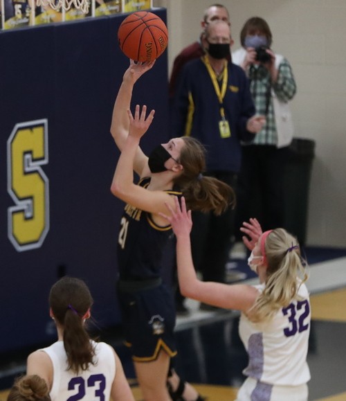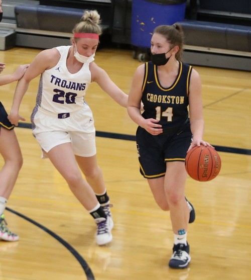Crookston responded with a 7-0 run with a Hayden Winjum basket and five points from Emma Borowicz to get within a 42-38 deficit with 5:14 remaining. Four minutes later, Crookston was within four points after an Emma Borowicz drive and layup to get within a 47-43 deficit with 70 seconds left, and it seemed like momentum might be on Crookston’s side. “We kept whittling away, and that shows toughness on the girls part,” said Coach Zimmerman.