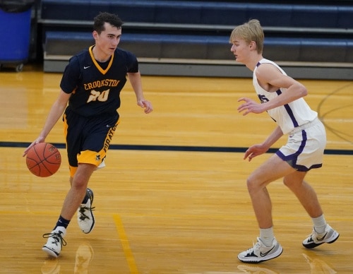 Haden Michaelson made a three-pointer to start the second half, but Barnesville answered with five straight points for a 43-30 lead. Crookston’s Hesby answered with a basket and Jack Garmen made a three-pointer to get within eight points (43-35) with less than 13 minutes remaining in the game. Crookston started to have unforced turnovers, including dribbling off their feet and legs and Barnesville jumped all over them by ending the game on a 37-16 run to win 80-51. Barnesville also had another highlight in the second half when Kaden Zenzen grabbed his ninth rebound to break the Barnesville school record with his 620th career rebound. “We didn’t have an answer inside for Barnesville,” said Coach Garmen. “I thought the boys played hard and rebounded well, especially Hesby. We have some good things to take away and are starting to buy in a little more and that is good. We are getting better and will have to keep working hard in practice.”