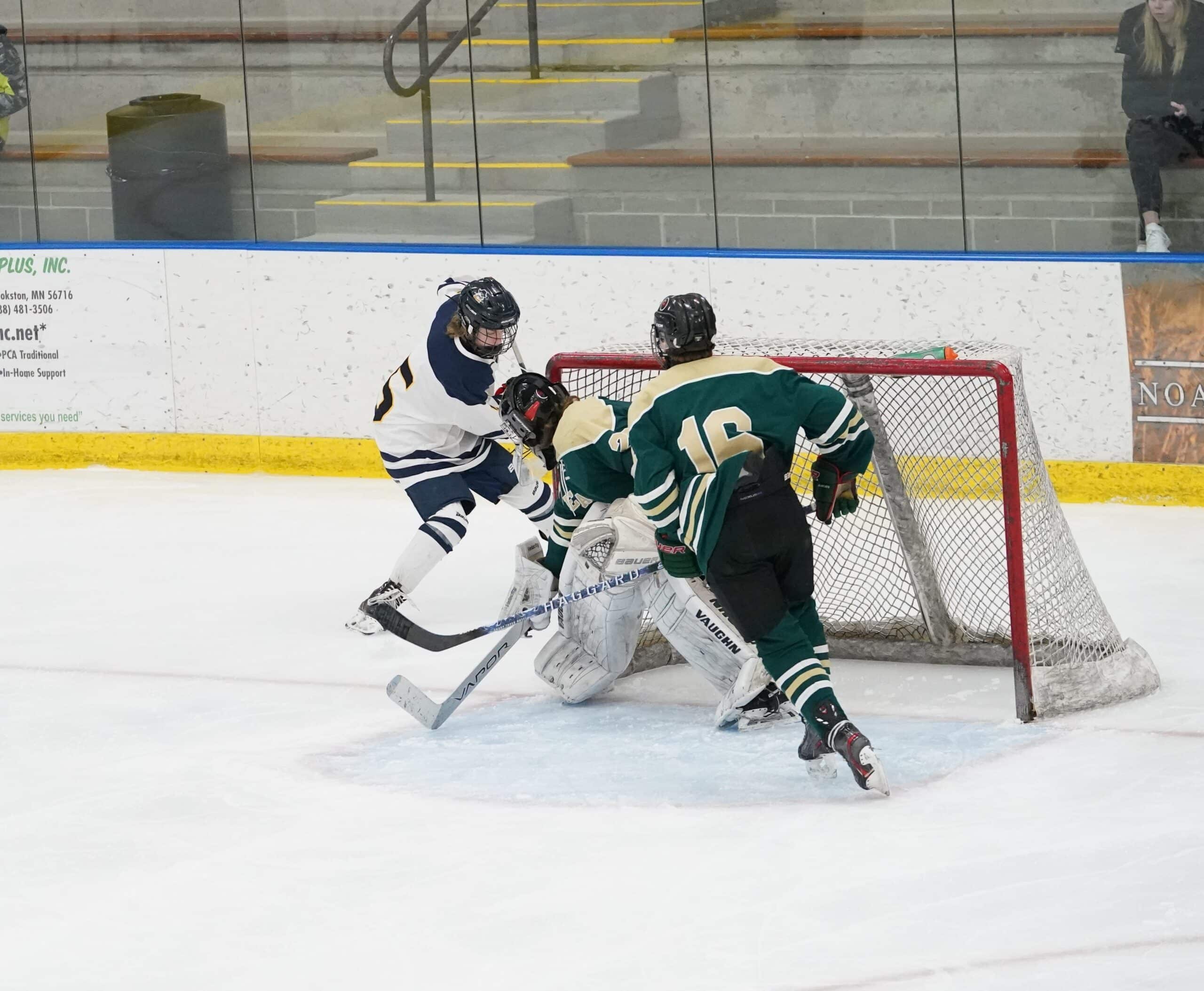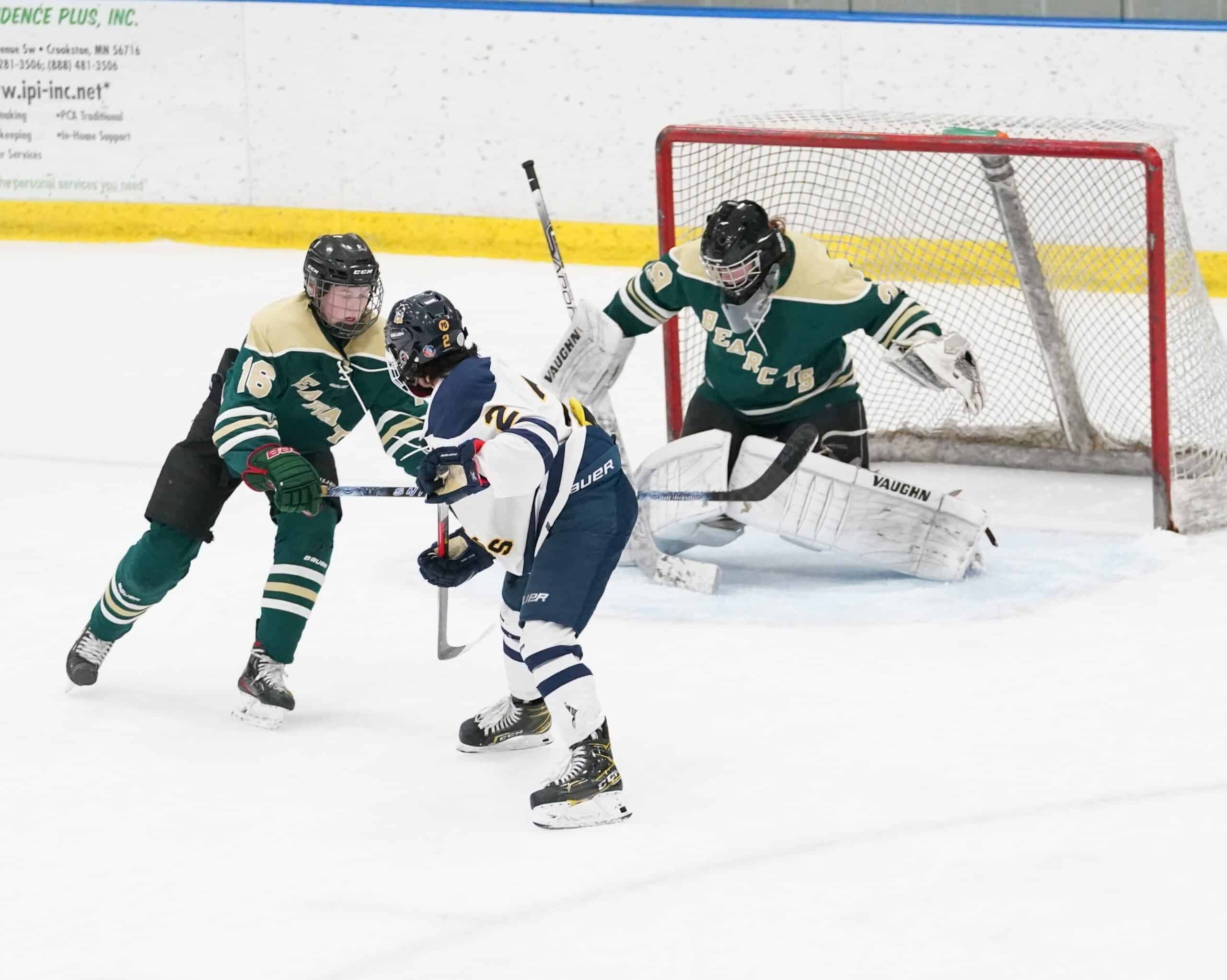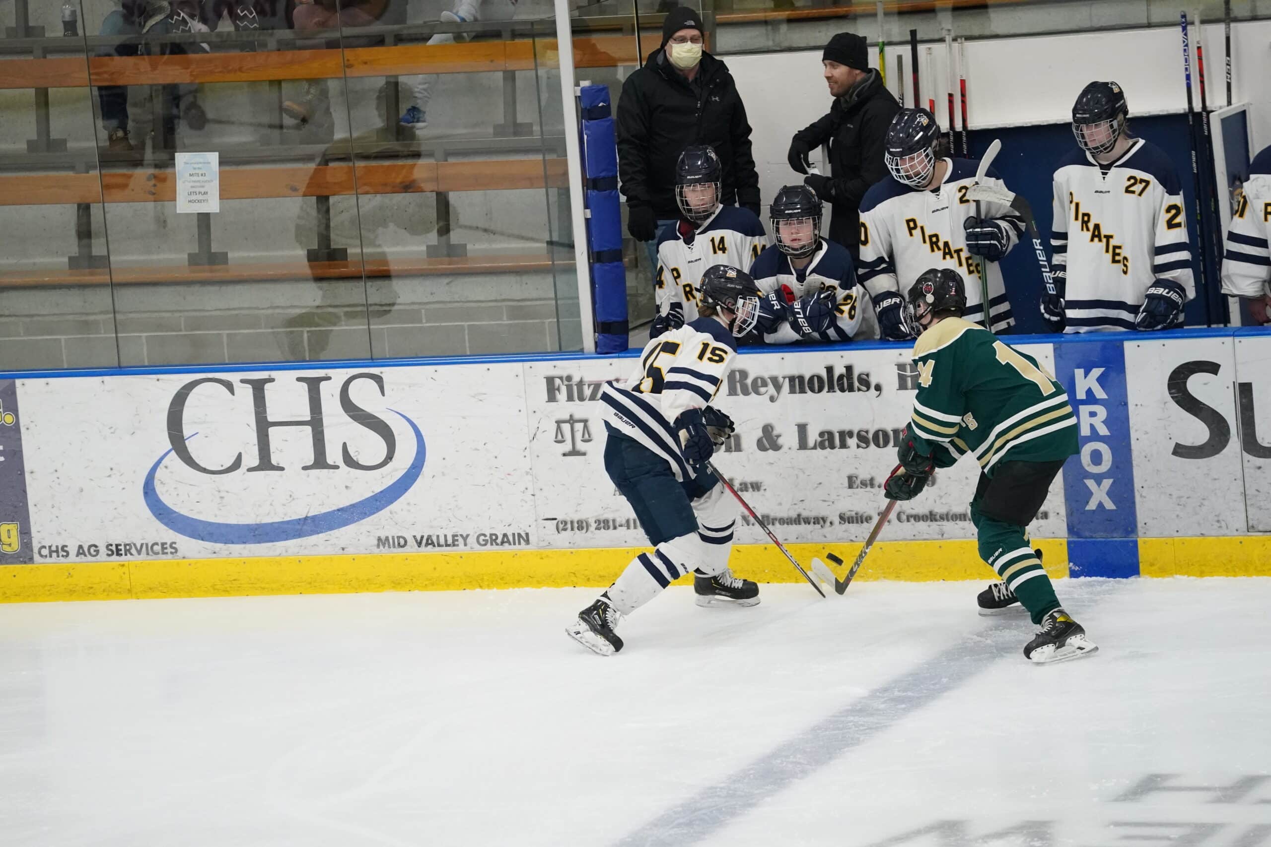 The Bearcats were able to kill the Pirates Power Play to begin the period, but Crookston would quickly find themselves with a 5-3 advantage after back-to-back penalties from Kittson County Central. The Pirates would have multiple chances to take the lead, but the Bearcats penalty kill would prevail, and the game would remain tied at 2-2. “Anytime you can kill a penalty late in the game it’s a big momentum boost,” said Pirates Head Coach Josh Hardy. “We certainly had our opportunities, but they did a grab job stopping us and clogging the middle as they did most of the night.” From there, all the momentum swung back to the Bearcats. Tyler Hennen would go coast to coast and beat Jaren Bailey to give the Bearcats a 3-2 lead with 8:31 left to play. A couple of minutes later the Bearcats would put the dagger in the Pirates, scoring another goal to take a 4-2 lead. The Pirates would never recover, and Kittson County Central would hang on to secure the 4-2 victory over the Pirates. Crookston was outshot on the night 36-25.