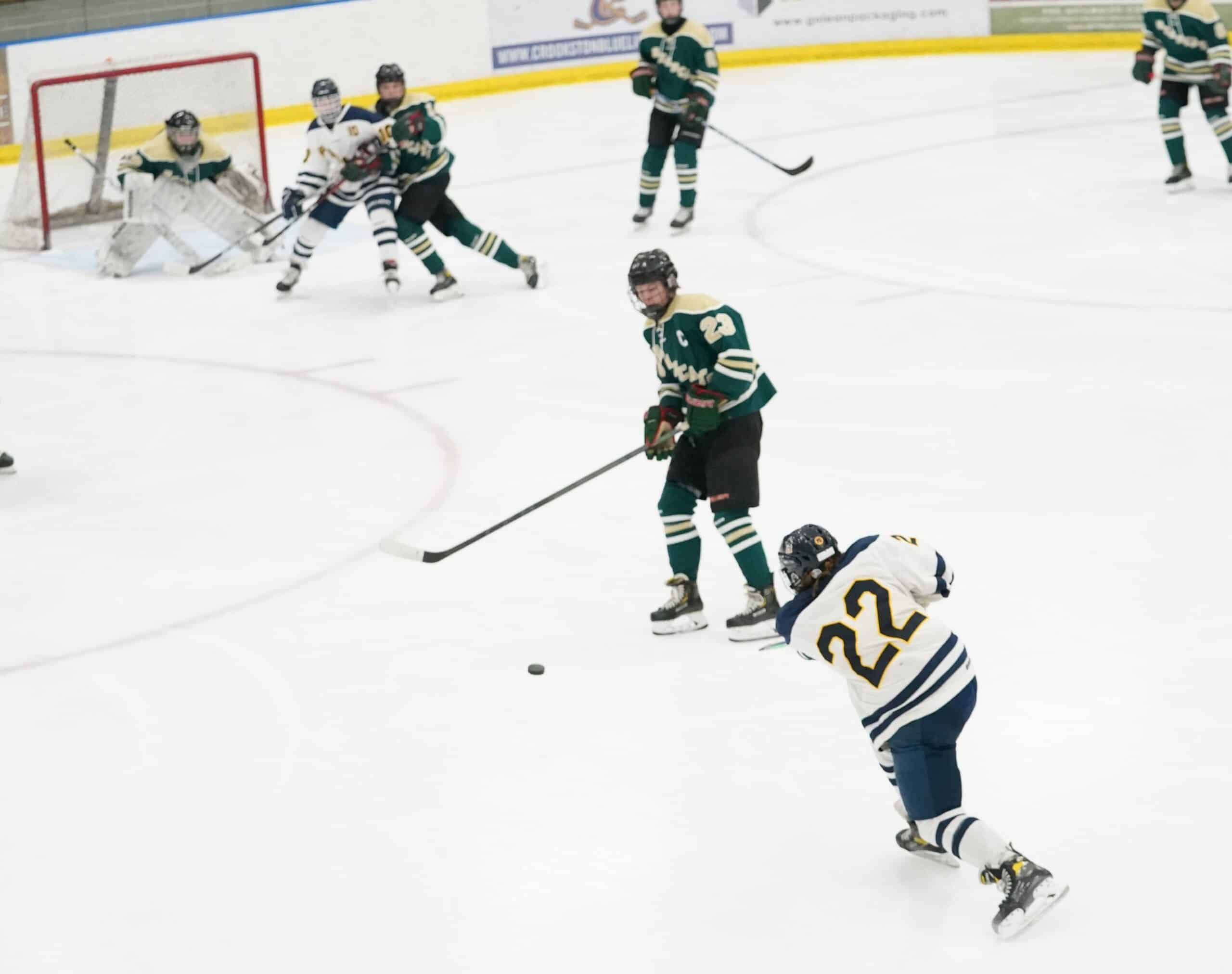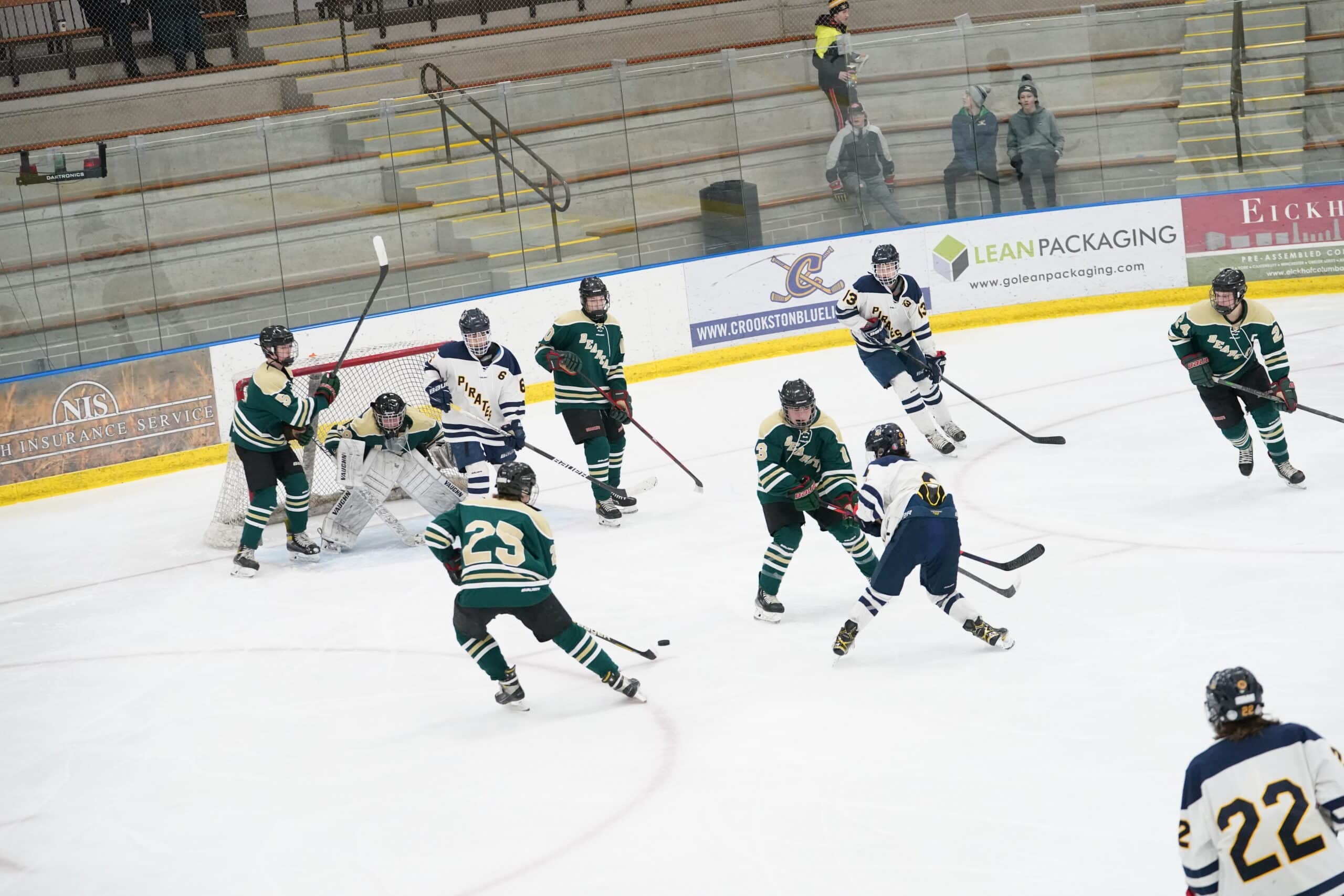 The second period was a fast-paced 17 minutes. Kittson County Central was able to tie the game just 3:00 minutes into the frame on a goal from Tyler Hennen. After that, each team had one Power Play opportunity, and both squads would capitalize. First, the Bearcats would score a goal at the 8:15 mark to take their first lead of the game at 2-1. “Their top line was great tonight,” said Pirates Head Coach Josh Hardy. “Tyler Hennen specifically did a great job tonight against us and we knew coming in he was going to be a challenge and we weren’t up to the task tonight.” After that, the Pirates would draw a penalty and Carter Trudeau would find the back of the net on a rebound tying the game 2-2 with 6:22 remaining in the period. Each team would commit another penalty at the end of the period, and after a brief stretch of 4v4 hockey, the period would end, and Crookston would start the final frame with 53 seconds of the man advantage. Kittson County Central outshot the Pirates 26-15 through the first two periods.