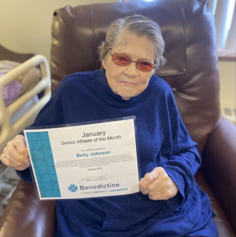 Congratulations to Betty Johnson, who is Benedictine Living Community – Crookston’s January Senior Athlete of the Month! The BLC – Crookston therapy team awarded her the January Senior Athlete of the Month.