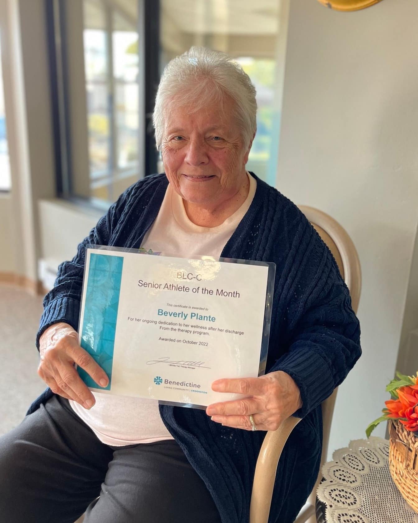 Beverly was shocked and honored by this award. She was excited to show it off to her peers and employees. After her therapy discharge, the BLC-C therapy team nominated her for her ongoing dedication to her overall wellness.