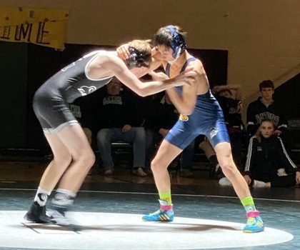 BGMR won the 195-pound match by pin, the 220 match by forfeit, and they won the heavyweight match by a pin late in the second period to come from behind to win 39-34. “We won seven matches, they won seven matches, and we lost a couple of close ones and having it be that close and slip away hurts,” said Coach Hanson. “We were hoping to beat them tonight, but it should confirm that we can wrestle and beat anybody in the section.  We have to clean up a few things and have a great performance in a couple of weeks.”