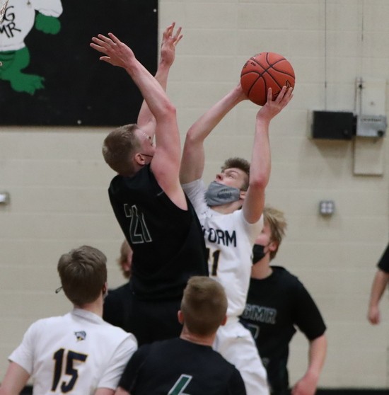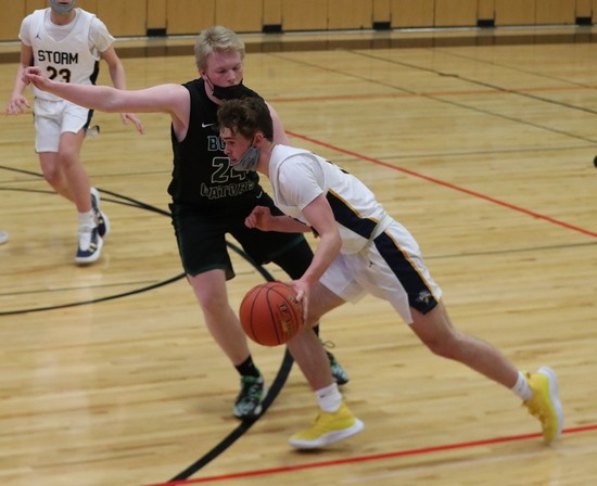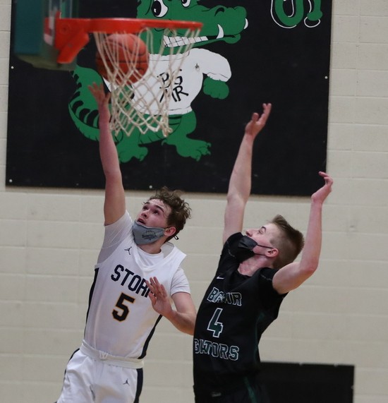 The teams battled back-and-forth early with ties at 3, 5, 8, 11, 13, and 15 before BGMR made a three-pointer for an 18-15 lead with 7:05 left in the half.  Stephen-Argyle picked up the defensive pressure, started making some shots, and went on a 14-0 run to end the half.  Zach McGlynn led the Storm with six points in the run, with Jason Lindgren scoring four points and Colin MacGregor and William McGlynn got two points apiece for a 29-18 lead halftime. “We played pretty good post defense, and we had them in tizzy late in the half, I thought,” said Coach Lubarski. “That was a key to give us the lead and to give us a shot.”