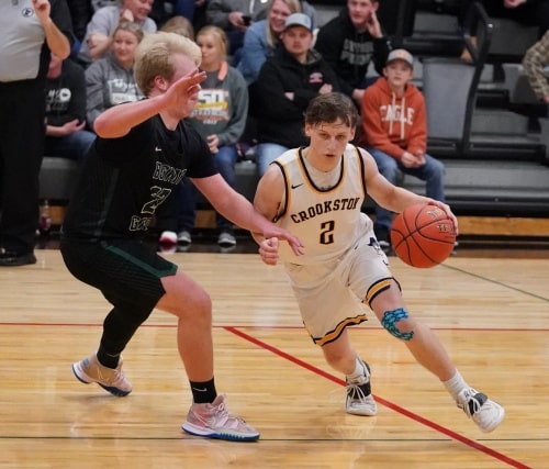 Crookston had an excellent start with ties at 2 and 4 with baskets from Jack Garmen and Tanner Giese. BGMR made a basket before Haden Michaelson buried a three-pointer for a 7-6 lead four minutes into the game. “We should have gone for one shot at the point, huh,” jokingly said Pirate Coach Greg Garmen. “We had a good start, but that was about it.” Unfortunately for the Pirates, BGMR dominated every facet of the game in the final 14 minutes of the half while taking advantage of Pirate foul troubles. “We had Jaccob Hesby in foul trouble and Tanner Giese in foul trouble, and that hurt,” said Coach Garmen. They started on a 15-0 run until Isaac Thomforde made two free throws, but BGMR continued to dominate and ended the final 14 minutes on the half by going on a 40-7 run to take a 46-14 lead at halftime. “They dominated us inside, and it was almost like they were playing power football, and we couldn’t stop them as they were scoring at will,”