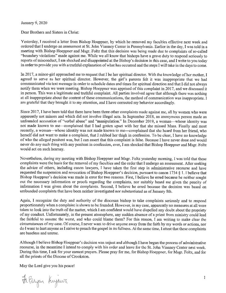 The Crookston Diocese and Bishop Michael Hoeppner have placed Father Bryan Kujawa on administrative leave for his conduct, including “boundary violations,” according to a statement from the Diocese. The conduct is described as non-criminal and non-sexual in the statement.