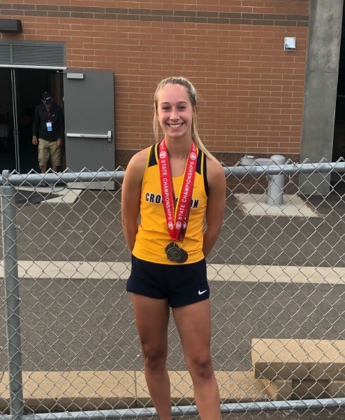 Crookston Pirate Senior Breanna Kressin competed this afternoon at the Minnesota State High School League Class A State Track meet at St. Michael-Albertville High School. Kressin qualified for the finals in all three of her events yesterday, the 100 hurdles, 300 hurdles, and 200 meters. Today, Kressin was 0.01 seconds off of another school record and finished in the top 6 in all three of her events, including a 2nd place finish in the 300 hurdles.