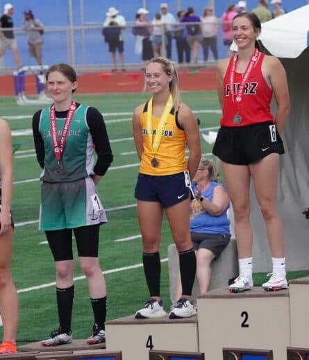 Kressin came out of the gates well and had an early lead in the race, but was eventually edged out by a couple of girls, including Shaina Zinter of Concordia Academy who set the Class A record in the preliminaries yesterday. Kressin finished with a time of 15.44 which was good for a 4th place finish in the state of Minnesota for Class A. The time was slightly above Kressin’s 15.19 that she ran in the preliminary yesterday. Zinter won the event with a time of 14.53