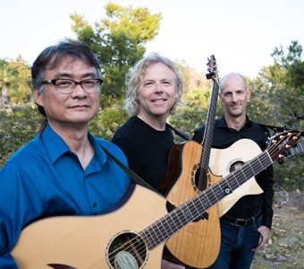 The California Guitar Trio’s lineup is truly the sum of its distinct parts: A Utah native now residing in Los Angeles, Paul Richards immersed himself in rock, blues, jazz, and folk during his early days and while attending the University of Utah’s jazz guitar program. Bert Lams, originally from Belgium, graduated from the prestigious Royal Conservatory of Music in Brussels, specializing in classical guitar. Tokyo-born Hideyo Moriya began his guitar journey with surf music and British rock, before relocating to Boston to study at Berklee.