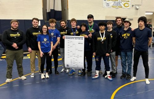 The Crookston Pirate Wrestling team’s Carter Coauette won both of his matches to win the Section Championship at 172 pounds, Jose Arriaga finished third place at 152 pounds, and Riley Helgeson finished fifth place at Heavyweight as the Pirates had three placers at the Section 8A Individual Wrestling Tournament held at the Crookston High School Gymnasium.