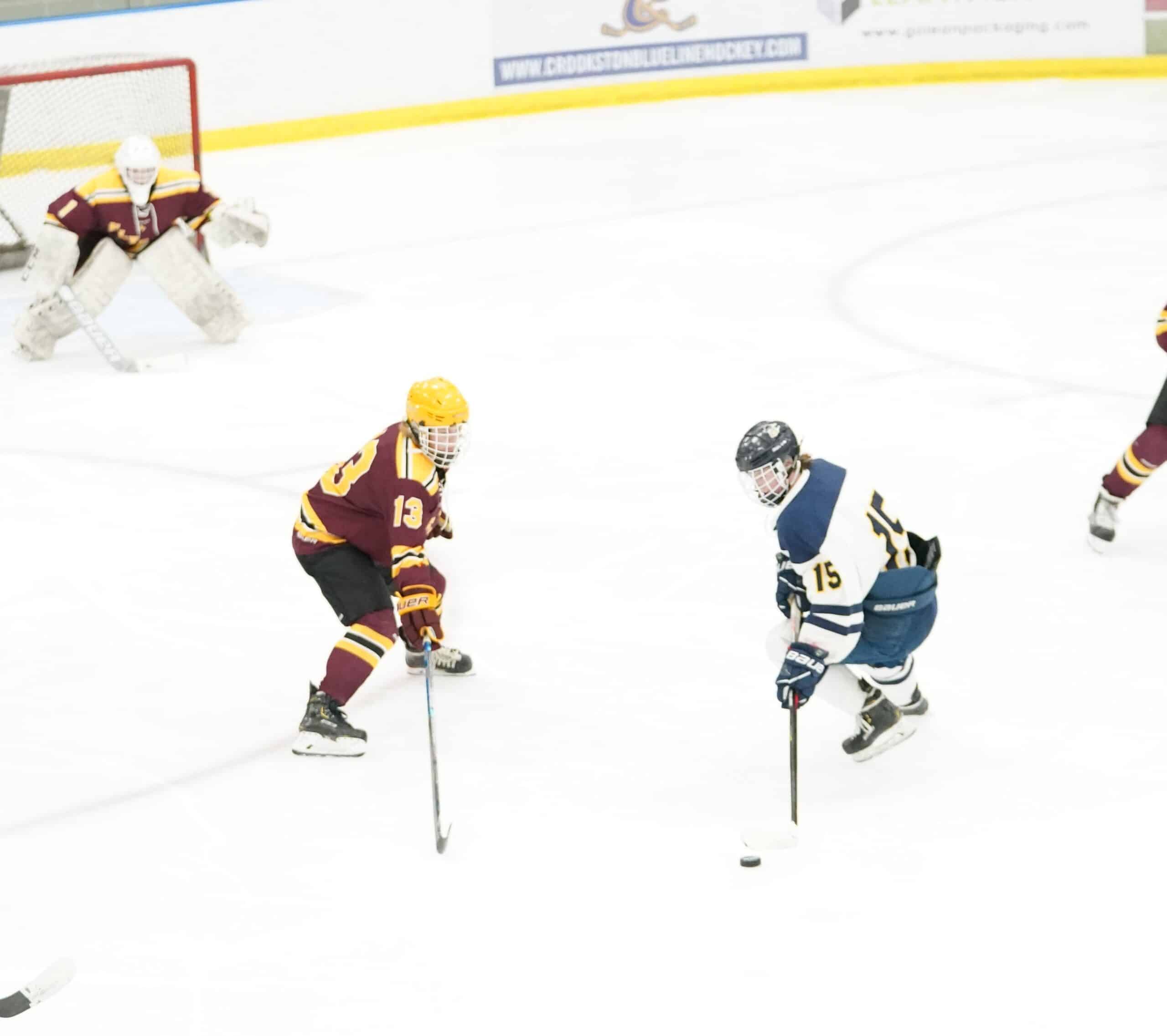 The Flyers quickly built on their lead, scoring a goal 1:49 into the second period taking a 3-1 lead. A few minutes later, Bagley-Fosston would score their fourth straight goal taking a 4-1 lead. The Pirates controlled the last nine minutes of the middle frame. The physical style of play continued in the second period and gave Crookston another Power Play opportunity. This time the Pirates would capitalize with the man advantage to pull the score within two at 4-2 with 2:21 remaining in the middle frame. Jack Doda took a beautiful pass from Alex Longoria to score his second goal of the game. “I said if we got a Power Play goal tonight, we would win the game,” said Pirates Head Coach Josh Hardy. “I was a little nervous about that being down two goals, but we ended up getting more than one Power Play goal, and we did a good job on that tonight.” Crookston would get another chance on the Power Play, but it would be broken up by the end of the period, and the score would remain 4-2 Bagley-Fosston heading into the final frame. Shots were almost even after two periods of play, with the Flyers holding a slight advantage at 21-20.