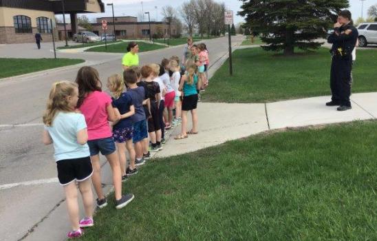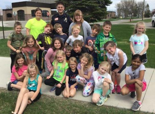 Polk County Health’s Sarah Reese and Kirsten Fagerlund, along with Crookston Police/School Resource Officer Don Rasciot, taught the Cathedral School 1st and 2nd graders about street safety in their Walk! Bike! Fun! program.