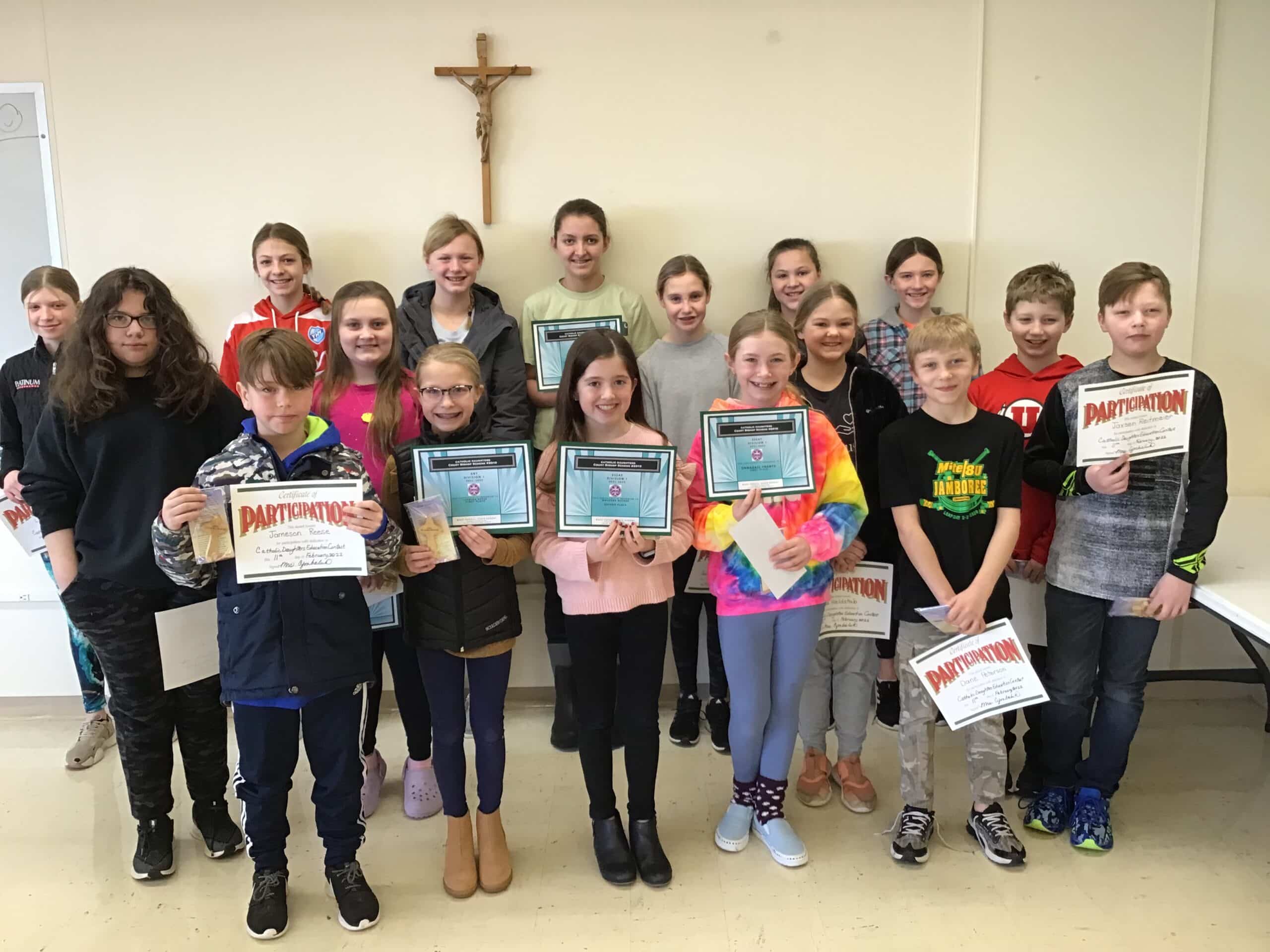 The Catholic Daughters of America Court held its Catholic Daughters Education Contest that had 4th, 5th, and 6th-grade students of the Cathedral School participate in its Essay and Art contests. Annual members Teresa Cymbaluk, Margee Keller, and Elaine Sylverster presented awards to participants with the 1st place winners heading to the State Contest!