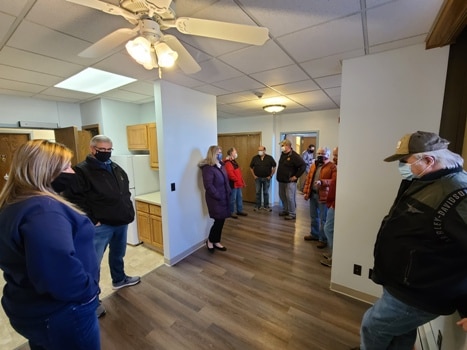 RiverView also has an office at Oak Court, which the board visited. “The board visited with Gladys Bakken, who heads up the RiverView Home Health Care, and she enlightened us to what customized living is at Oak Court,” said Hoiseth. “Really want to thank Gladys and RiverView for their partnership. And the board had a good opportunity to see all the things the tenants are made available to for their assistance.”