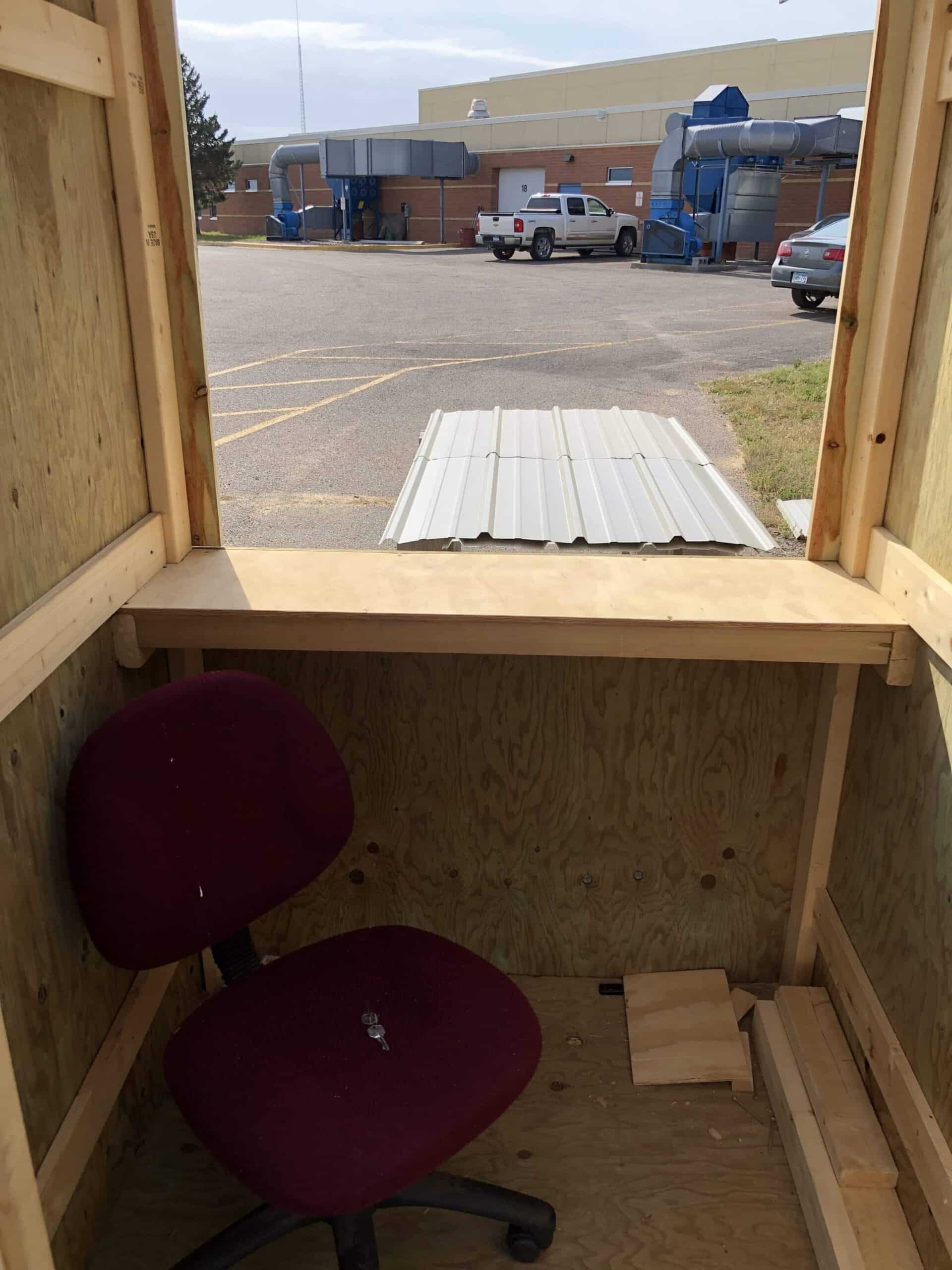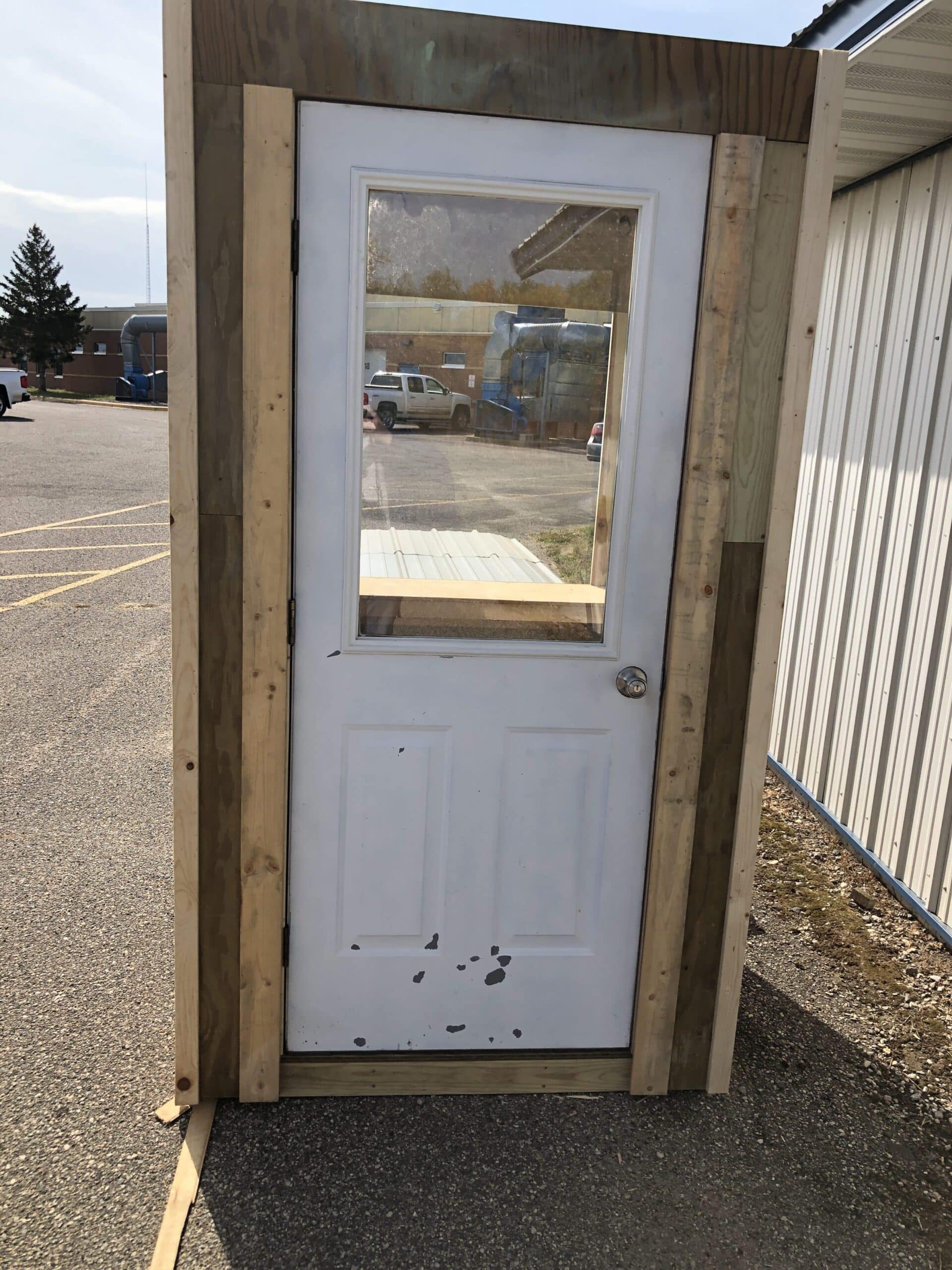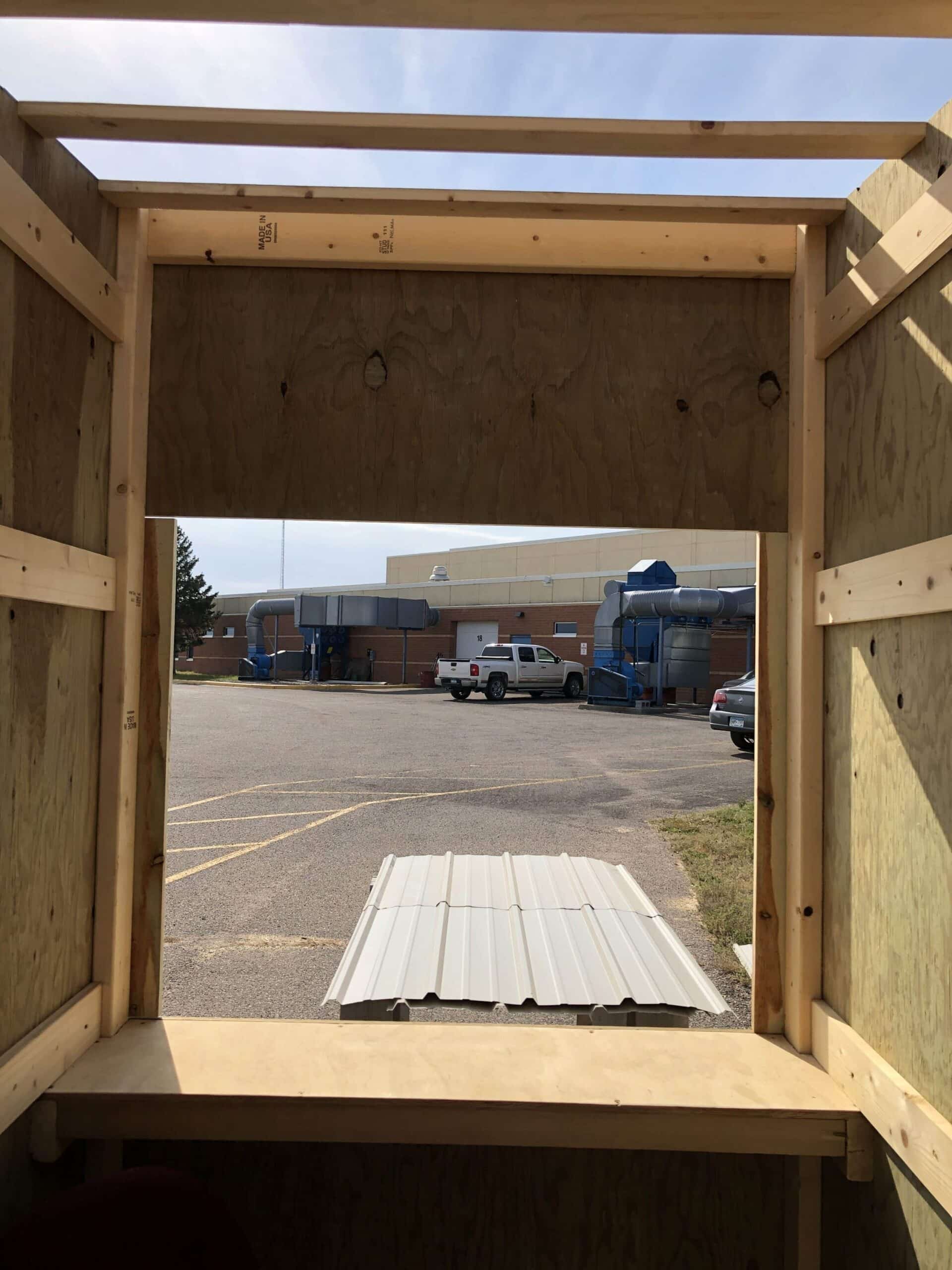 The first project the class has that’s near completion is a new scorekeeper and ticket booth for the Crookston High School soccer field being made by Hunter Knutson, Hunter Kresl, Evin Trudeau, Ryan Abeld, Jackson Demarais, and Jaren Bailey. The team began the project by building the booth’s base, framing it with a few 2×4 pieces of wood, and adding some ¾ inch plywood to build up the frame of the booth. “There’s not too much left to it. We just need to put the plexiglass in and the roof, then chip her off with some paint, and she is good to go,” senior Hunter Kresl explained. The final additions to the booth should be complete by today, and they will add paint next week before they install it on the field by Wednesday.