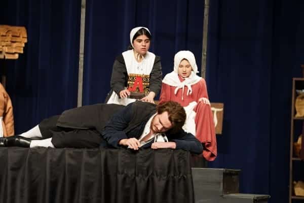 The play isn’t the easiest play, but the cast makes it look easy. “It is. Much of the language is from the original book by Nathanial Hawthorne. It is much like Shakespeare, and that is why it is so difficult because if you don’t memorize it word for word, you not only mess yourself up, but you mess up the person getting the cue,” said Carlson. “I am impressed by the way they have embraced this. When I first introduced this, they knew the movie with Emma Stone called the Easy A, and I went okay. I was gratified with how well they have embraced it.”