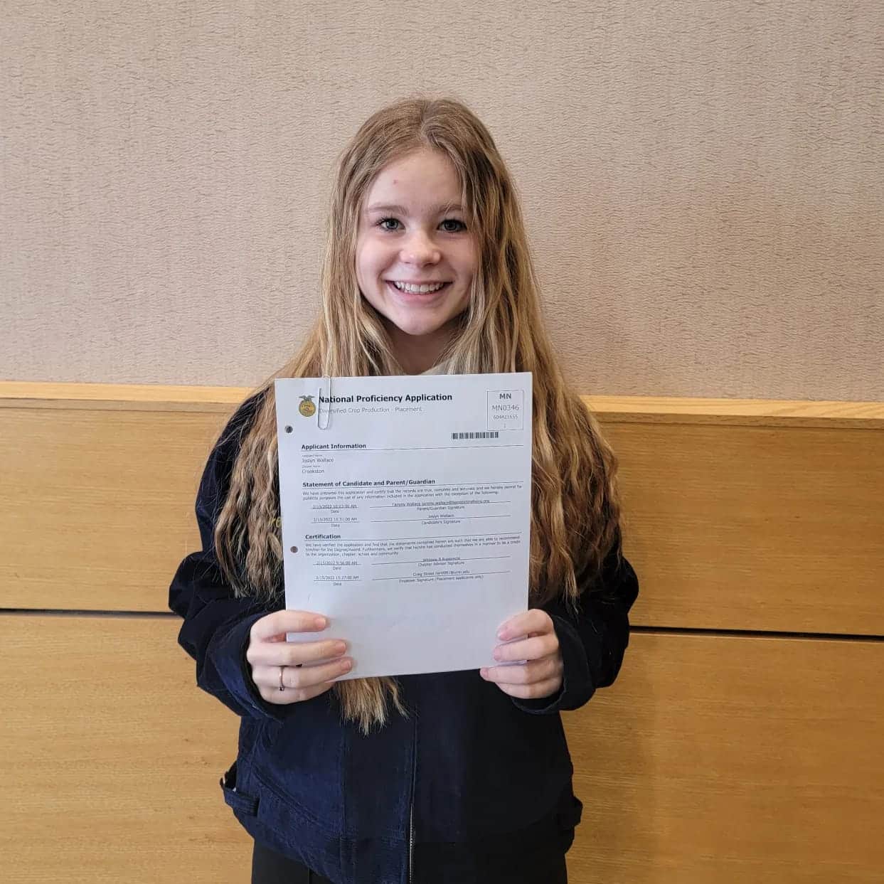 Crookston FFA has 3 top placing Proficiency applications. The applications are based upon a student’s Supervised Agricultural Experience, a.k.a. their work-based learning activities. Libby Salentine won the region event, and her application was advanced to State, where it was announced that she was among the top three! Libby’s application was on her experience with Agricultural Education in the classroom. “I have learned so much working with Mrs. Rupprecht,” Libby explained. Clay Hanson won the region event, and his application was also advanced to State, where it was announced that he was in the top three as well! Clay’s application was on his work experience with a local fiber and oil crop farm. Joslyn Wallace placed 2nd at the regional event, and her application advanced to the State. “My SAE is working on a farm where we raise organic edible beans. I love what I do and hope to be a crop farmer one day.” Joslyn Wallace explained.