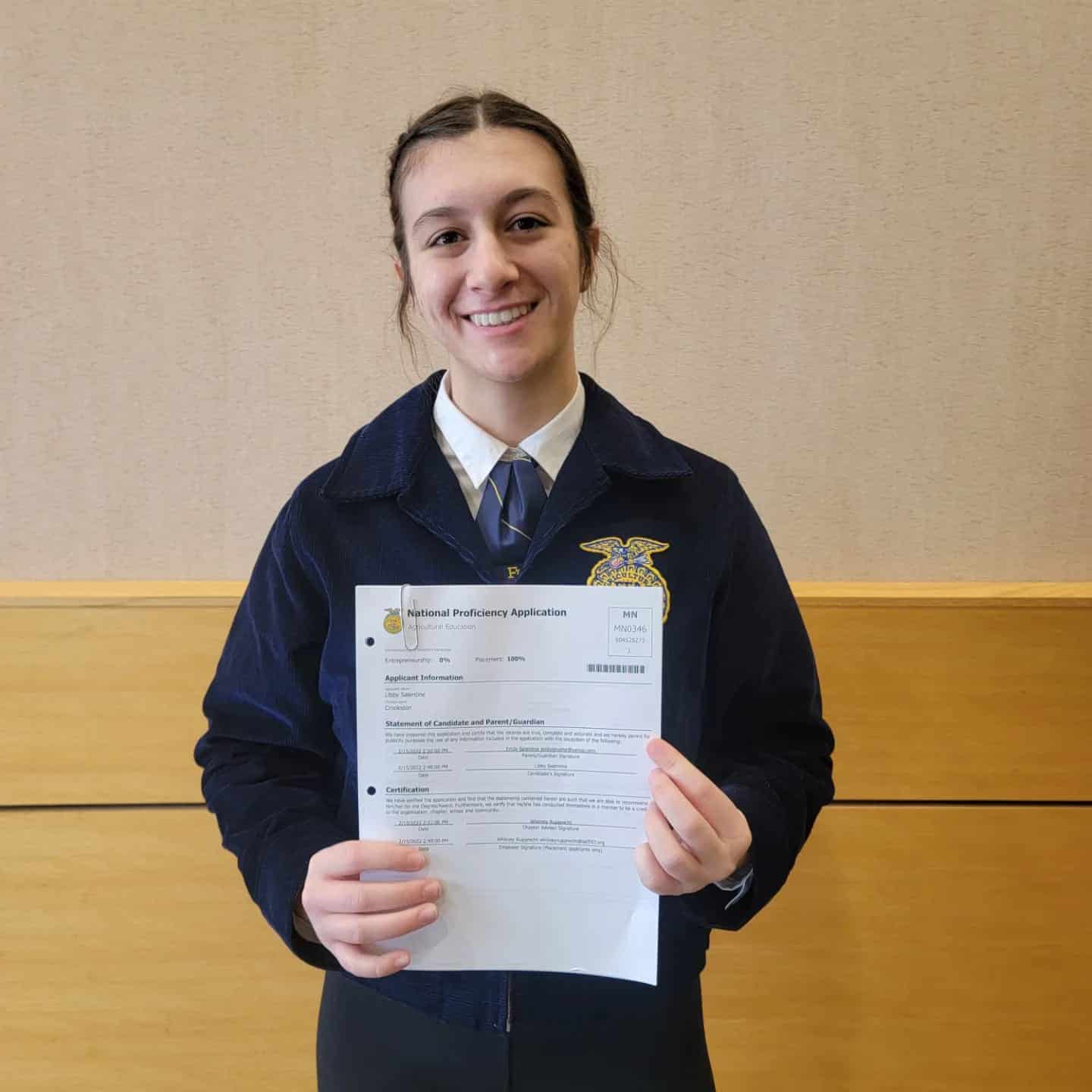Only a handful of individuals are selected, but Libby Salentine will have the honor of being an Ag Ambassador at the MN State FFA Convention. Libby will receive training in how to communicate with businesses. From there, she will be working with CEOs and Presidents of companies to convey the message of agriculture and FFA. Joslyn was also selected as the one representative from Region I to be on the 22-23 State Officer Nominating Committee. Joslyn will travel to State FFA Convention early and host numerous rounds of interviews to select the new officer team. Her job is to represent all of Northwest Minnesota in selecting the new team.