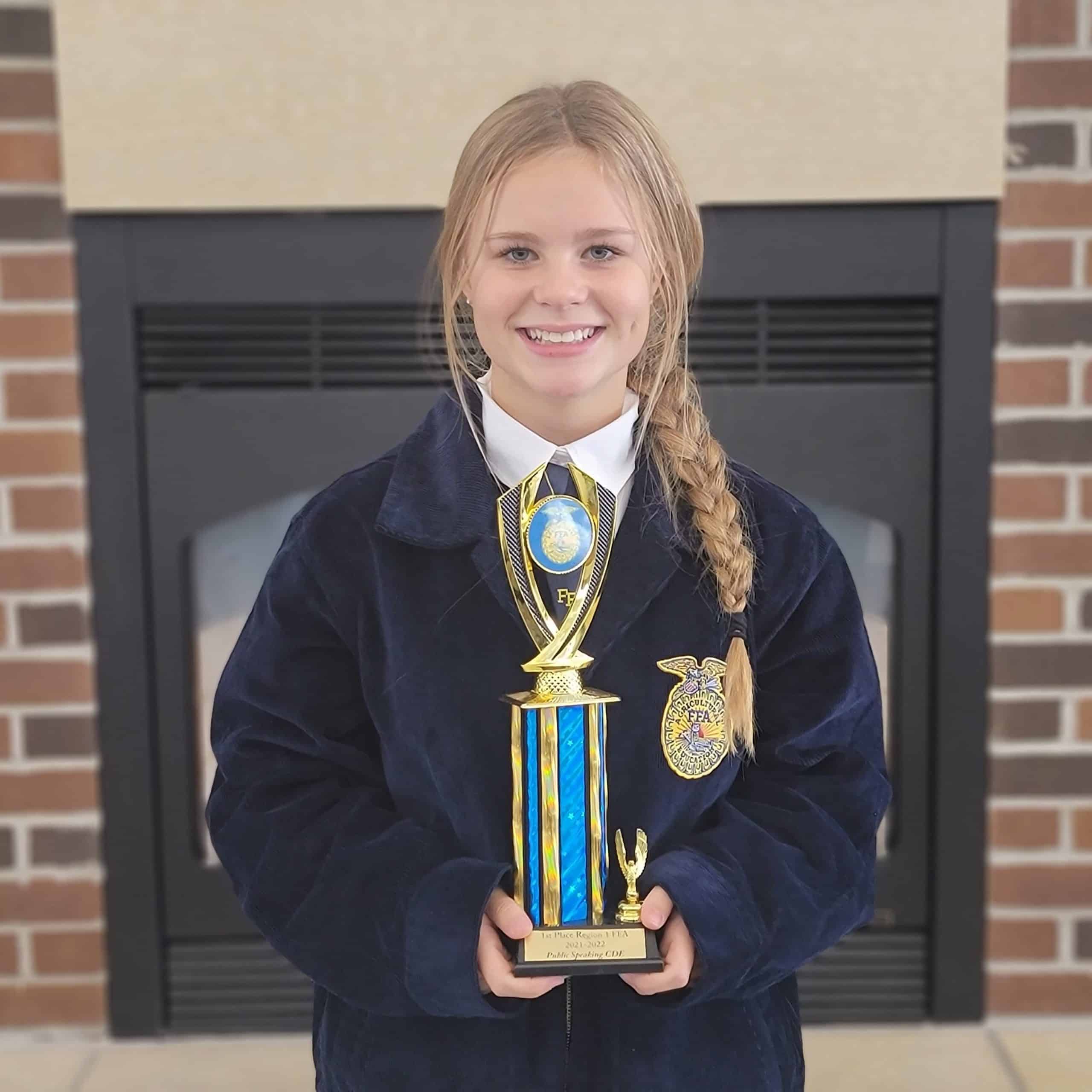FFA Member, Addison Schiller, has memorized all five paragraphs of the FFA and will recite it to a panel of judges, followed by questions. “This is really helping me with my public speaking skills. I want to do this again next year!” Addison Schiller explained.