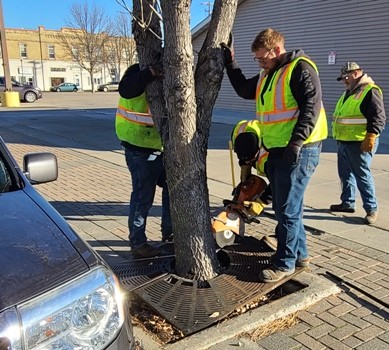 Public Works Director Pat Kelly said staff would try torch to cut wider openings in the grates with a plasma torch, but not all of them will be put back in place. “I’ve noticed this last year walking around that a lot of the trees are starting to overgrow the grates around them,” said Kelly. “On some of them, we’re pulling the grates and widening the opening on the ones we can. Some of them are damaged, and we’re just removing them. Some of them have heaved up so much from the root balls and stuff like filling the box that they are sticking up now anyway. It’s safer that we pull those out and put some black dirt in those so that it’s less of a trip hazard. That’s what we’re doing now.”
